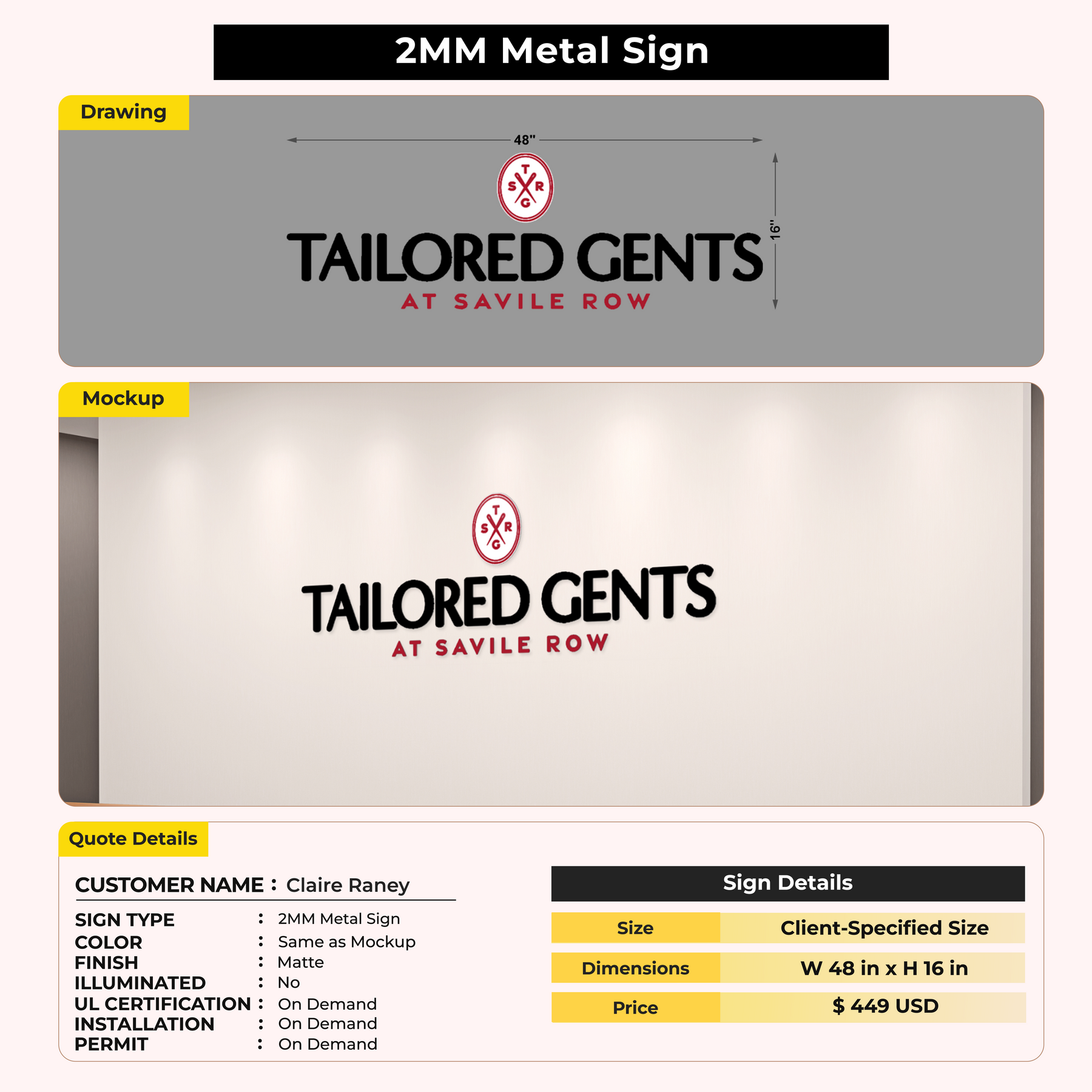 2MM Metal Sign For Claire Raney