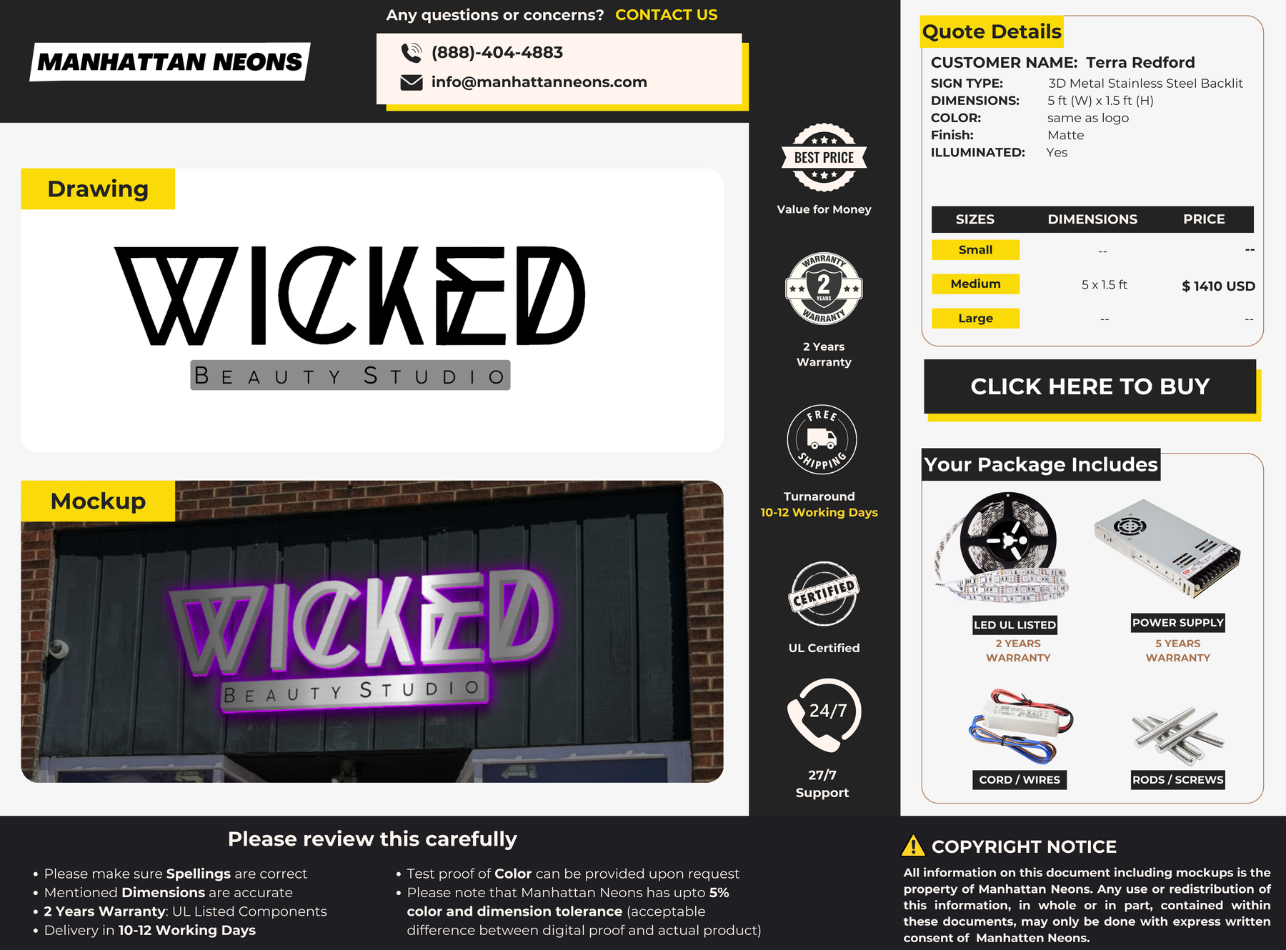 We offer 5 Years Warranty on all our neon signs. We care for all our customers to have a happy experience