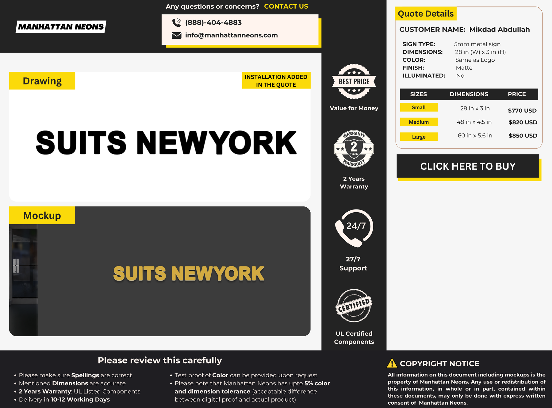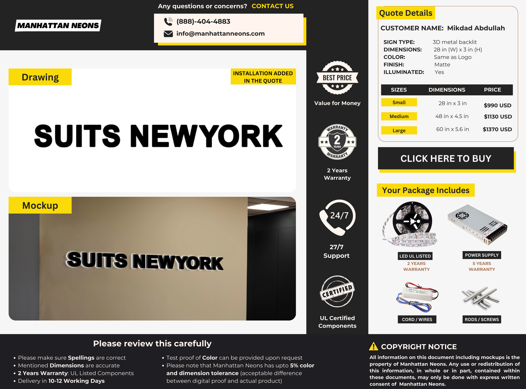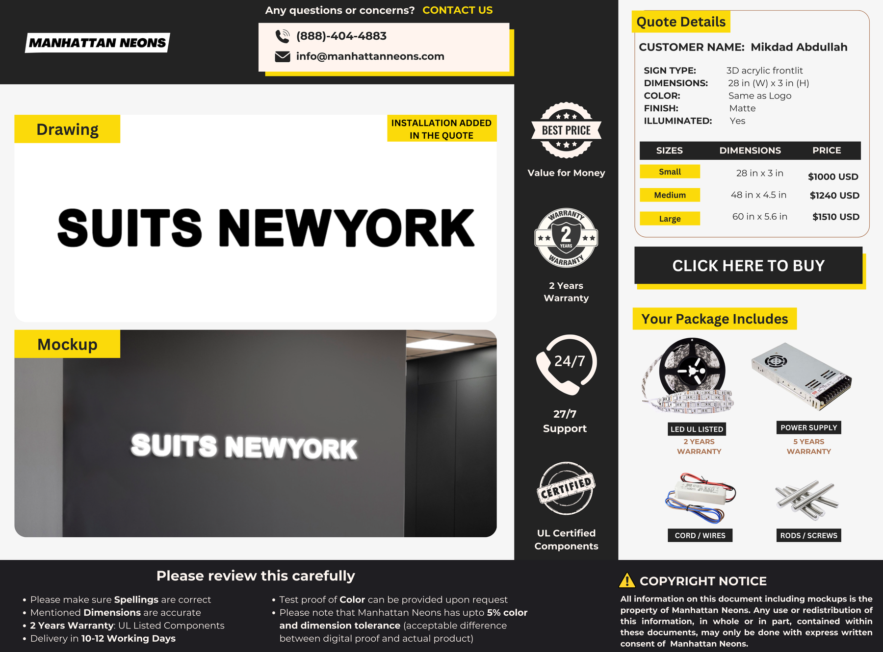 We offer 5 Years Warranty on all our neon signs. We care for all our customers to have a happy experience