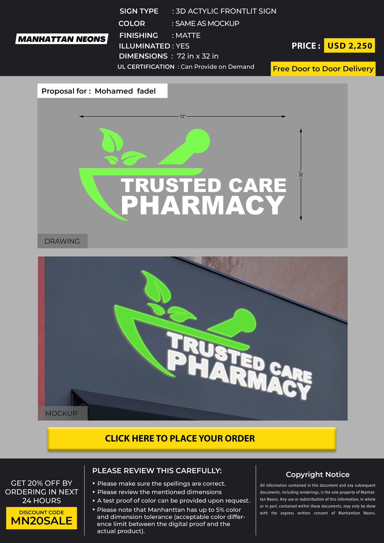 3D Acrylic Front-lit Sign For Mohamed fadel