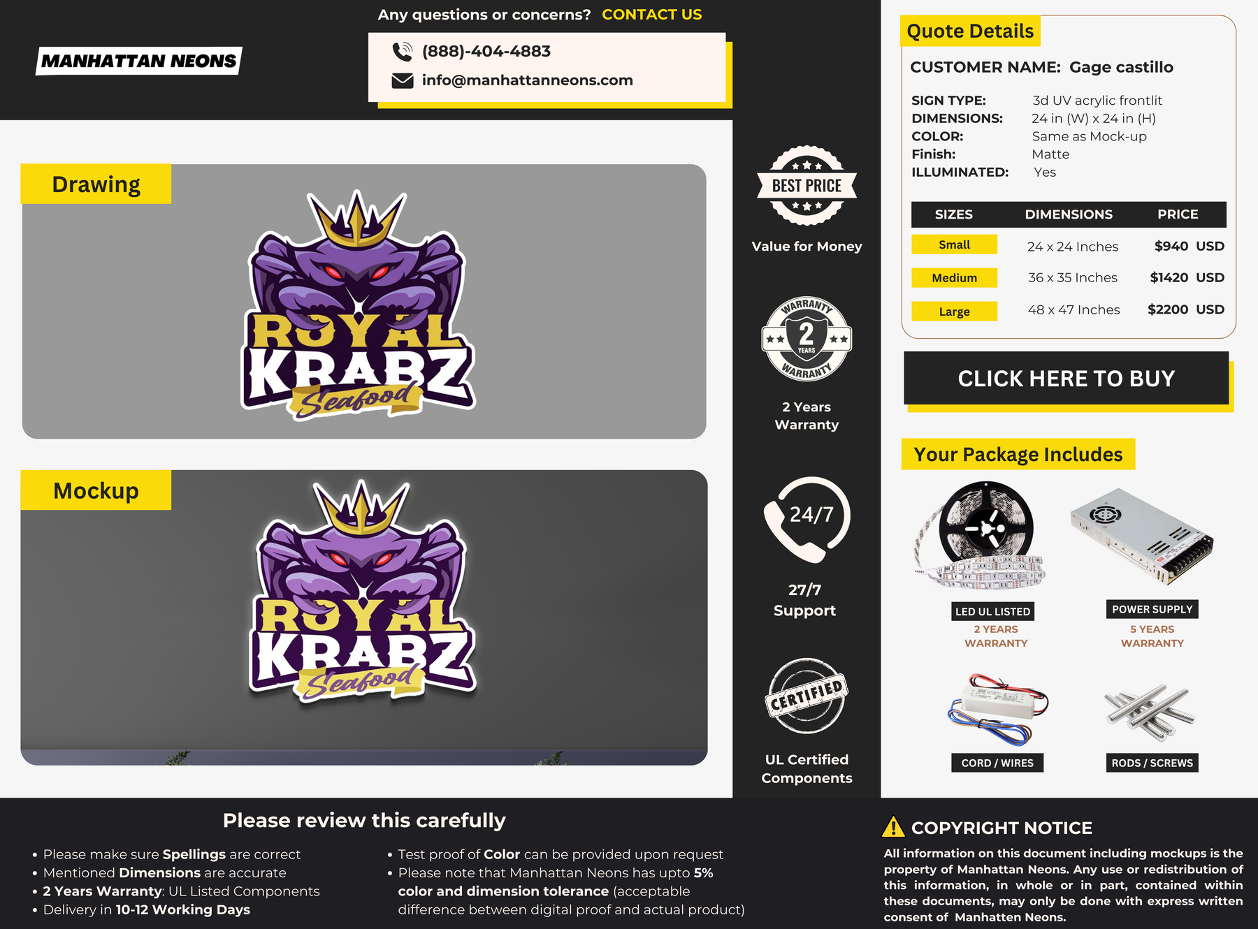 We offer 5 Years Warranty on all our neon signs. We care for all our customers to have a happy experience