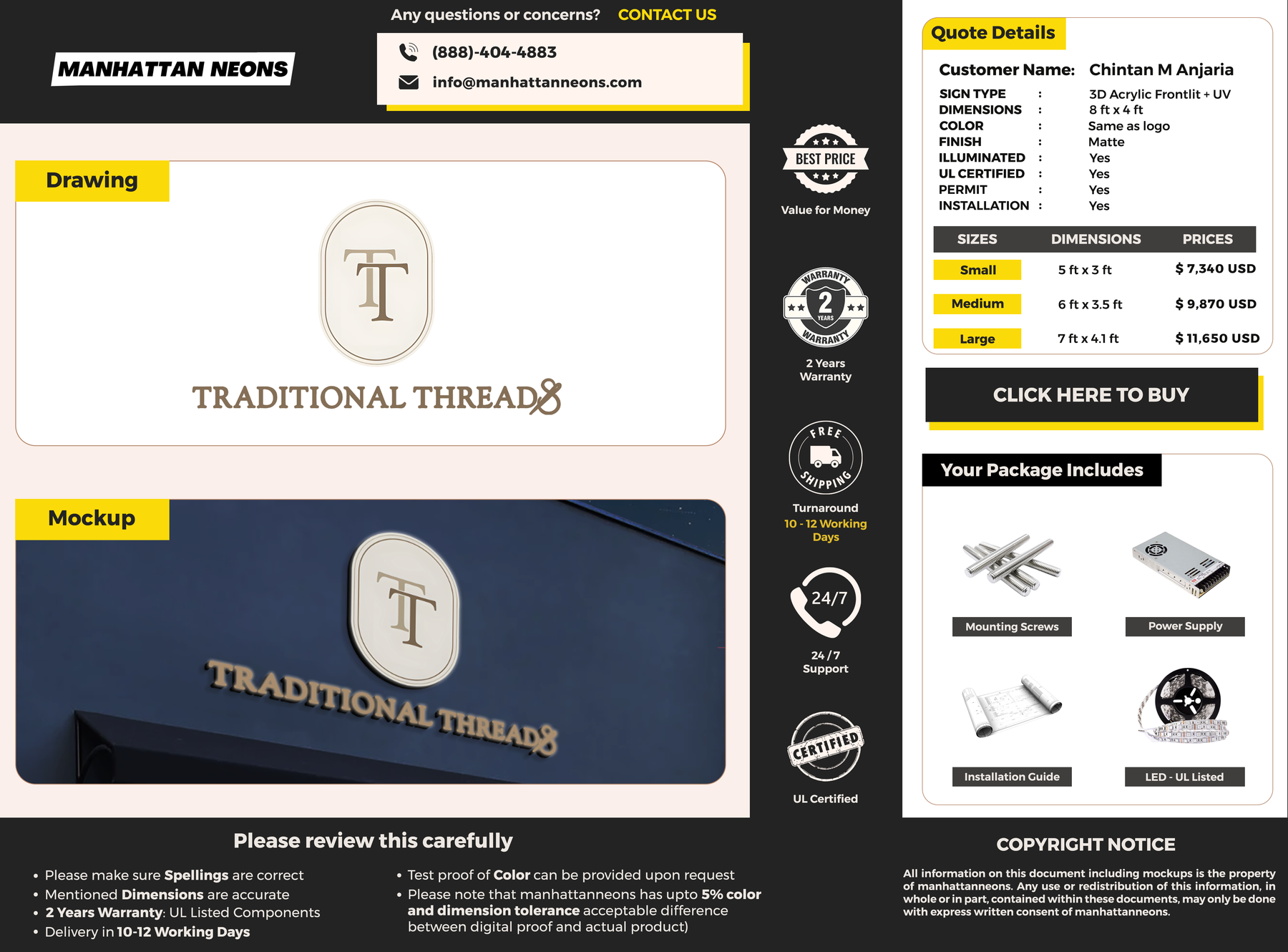 We offer 5 Years Warranty on all our neon signs. We care for all our customers to have a happy experience