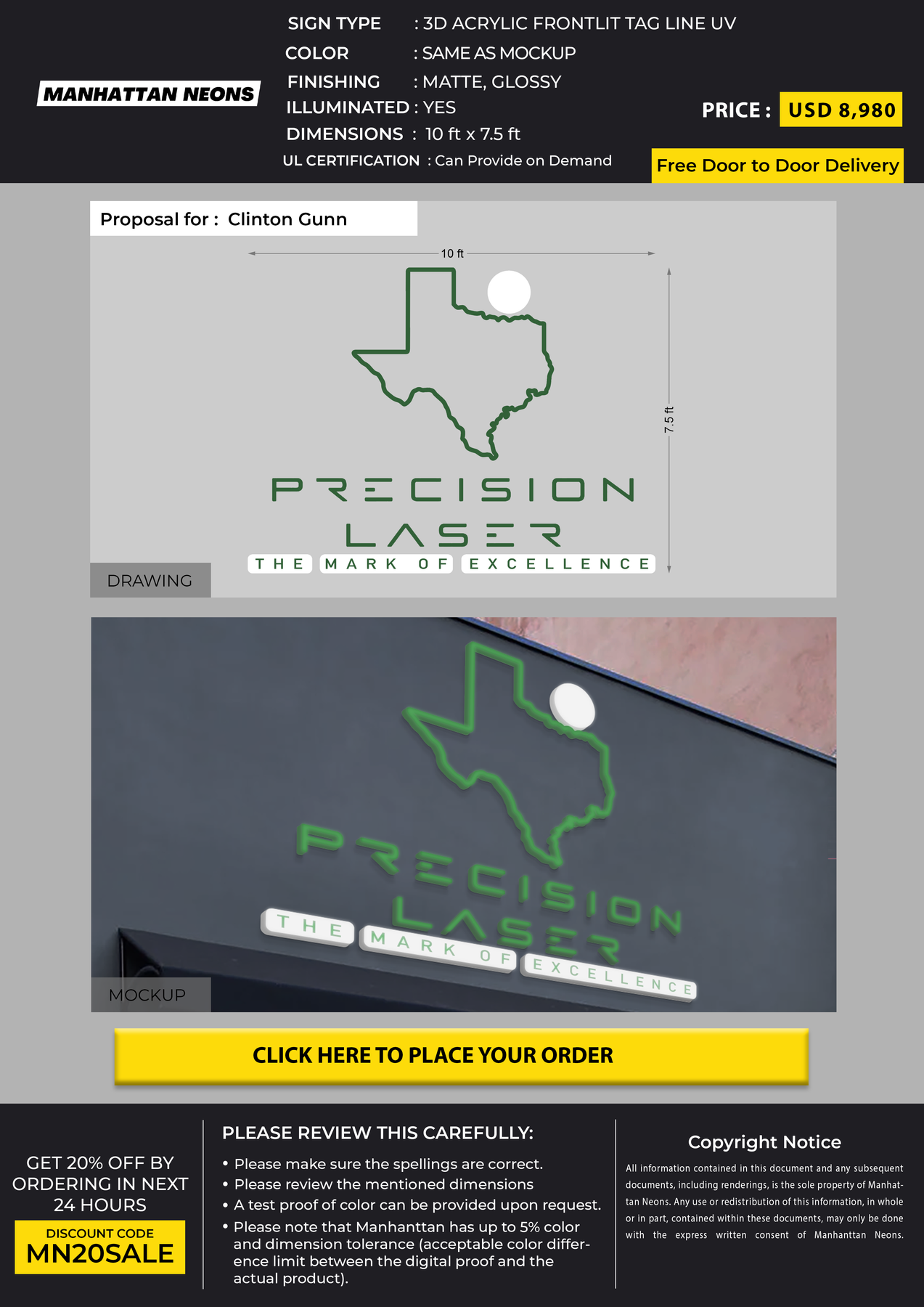 3D Acrylic Frontlit Sign for Clinton Gunn