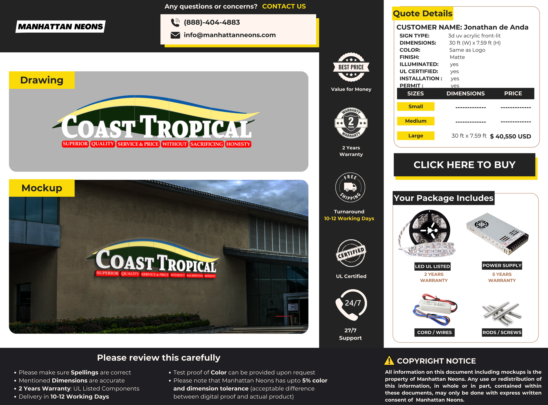 We offer 5 Years Warranty on all our neon signs. We care for all our customers to have a happy experience