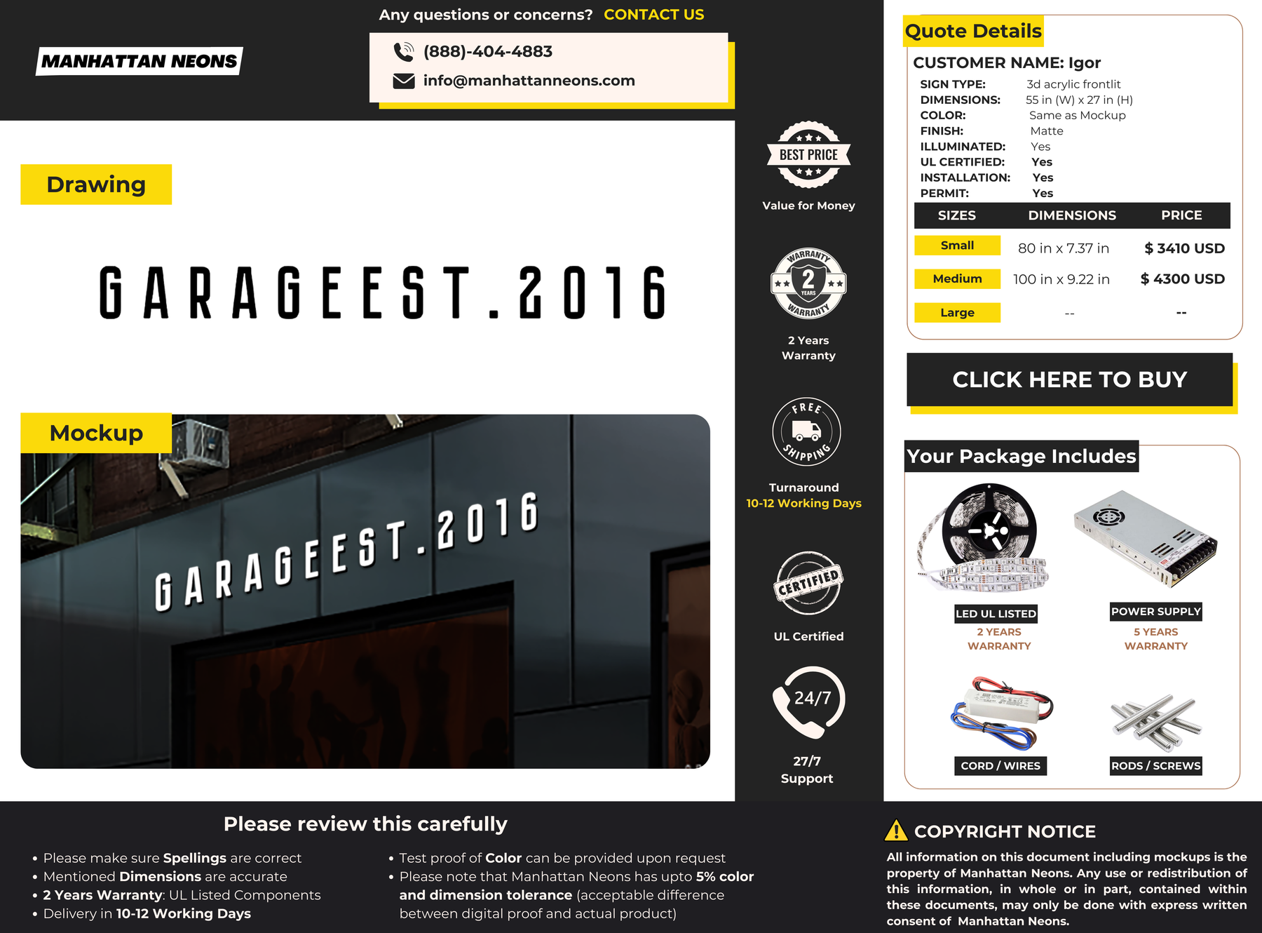 We offer 5 Years Warranty on all our neon signs. We care for all our customers to have a happy experience