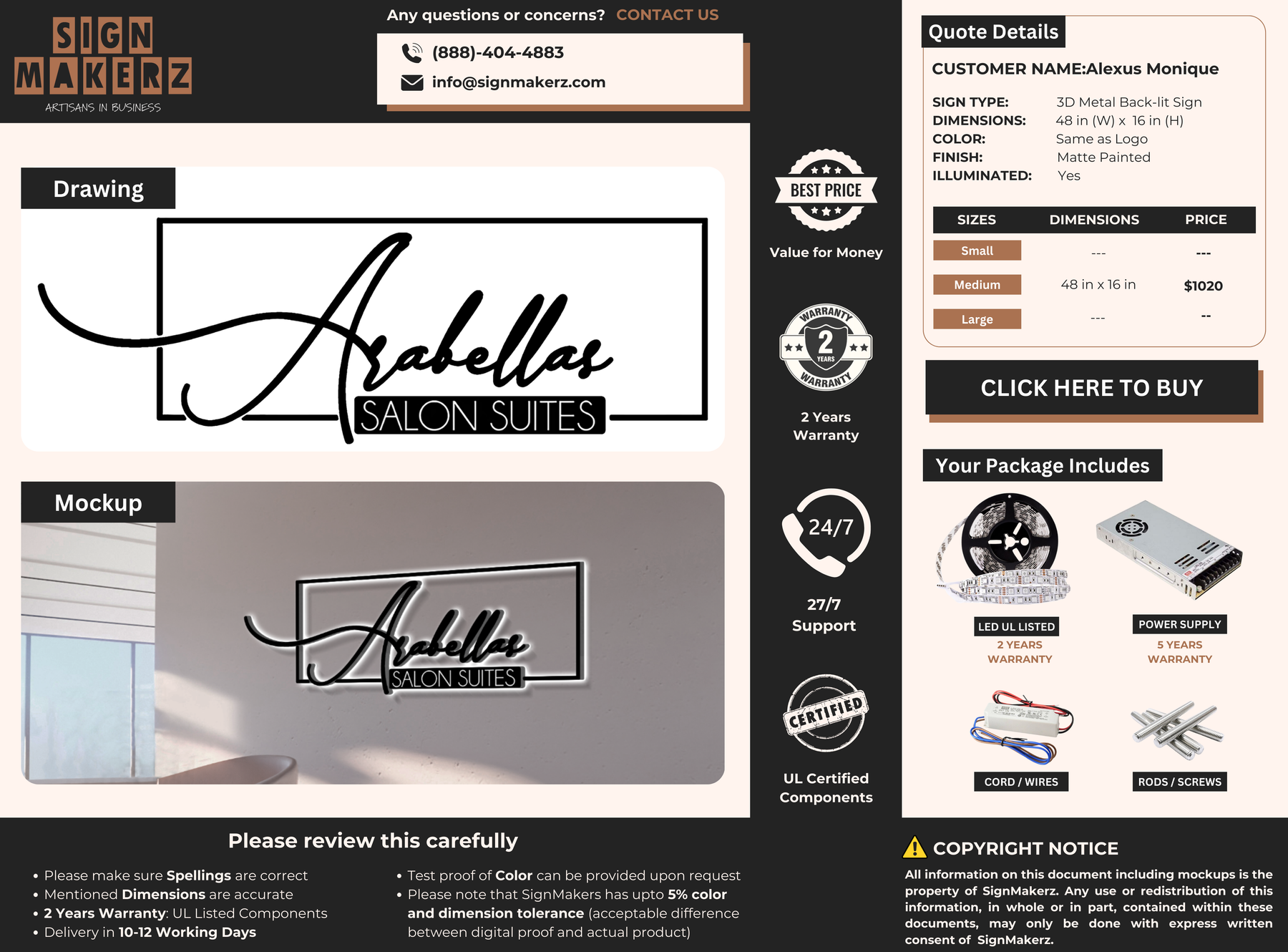 3D Metal Back-lit Sign For Alexus Monique Golden