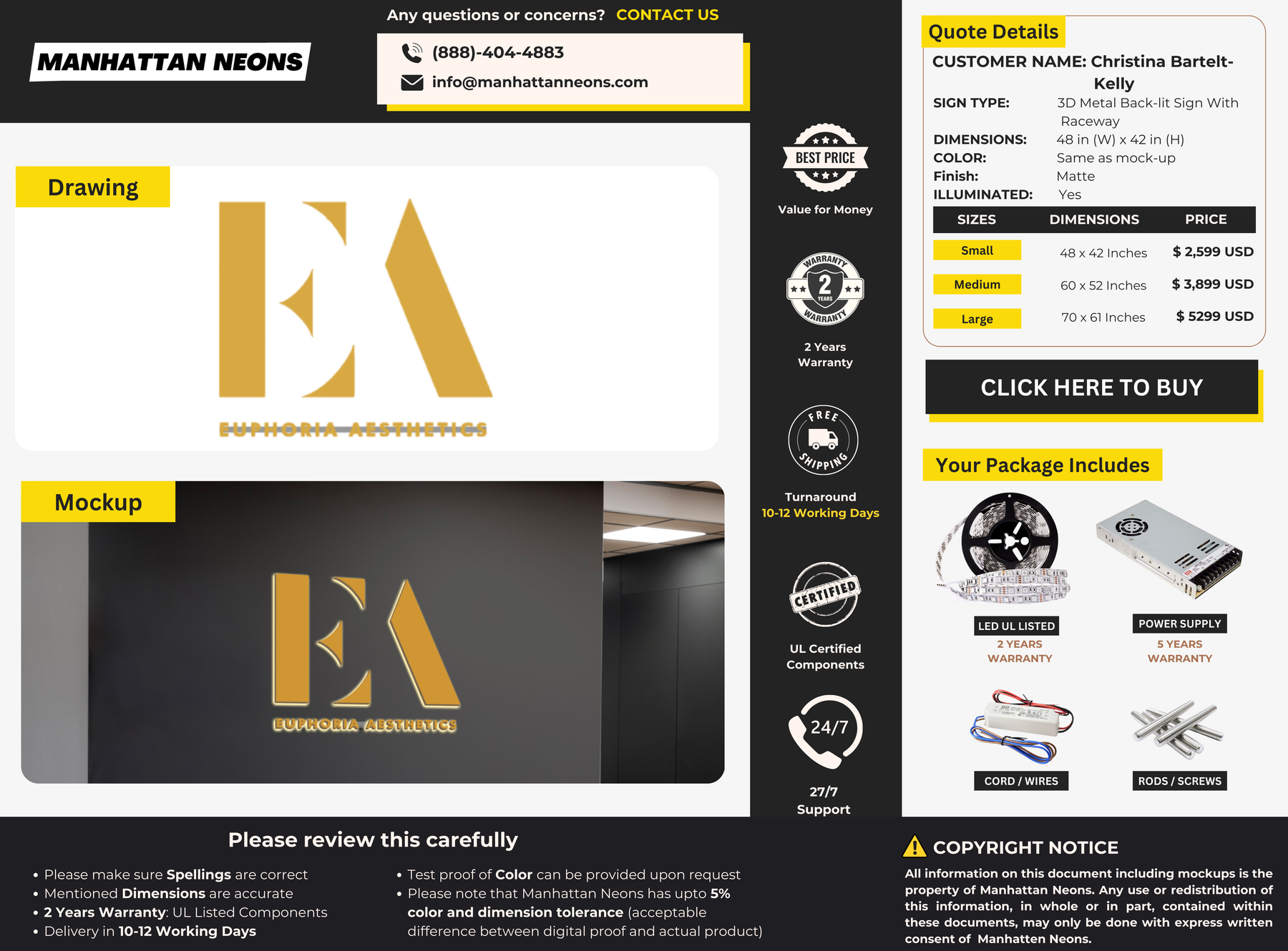 We offer 5 Years Warranty on all our neon signs. We care for all our customers to have a happy experience