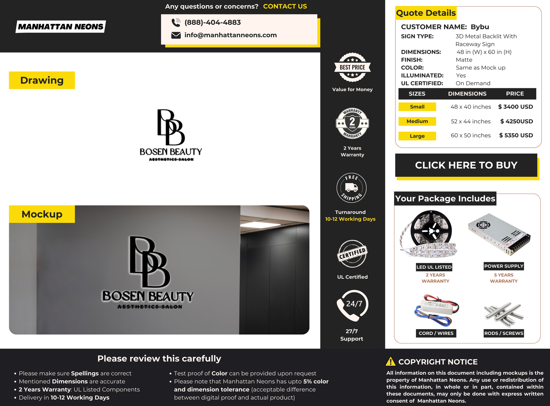 We offer 5 Years Warranty on all our neon signs. We care for all our customers to have a happy experience
