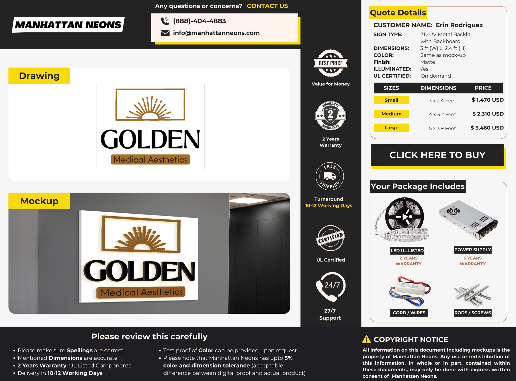 We offer 5 Years Warranty on all our neon signs. We care for all our customers to have a happy experience