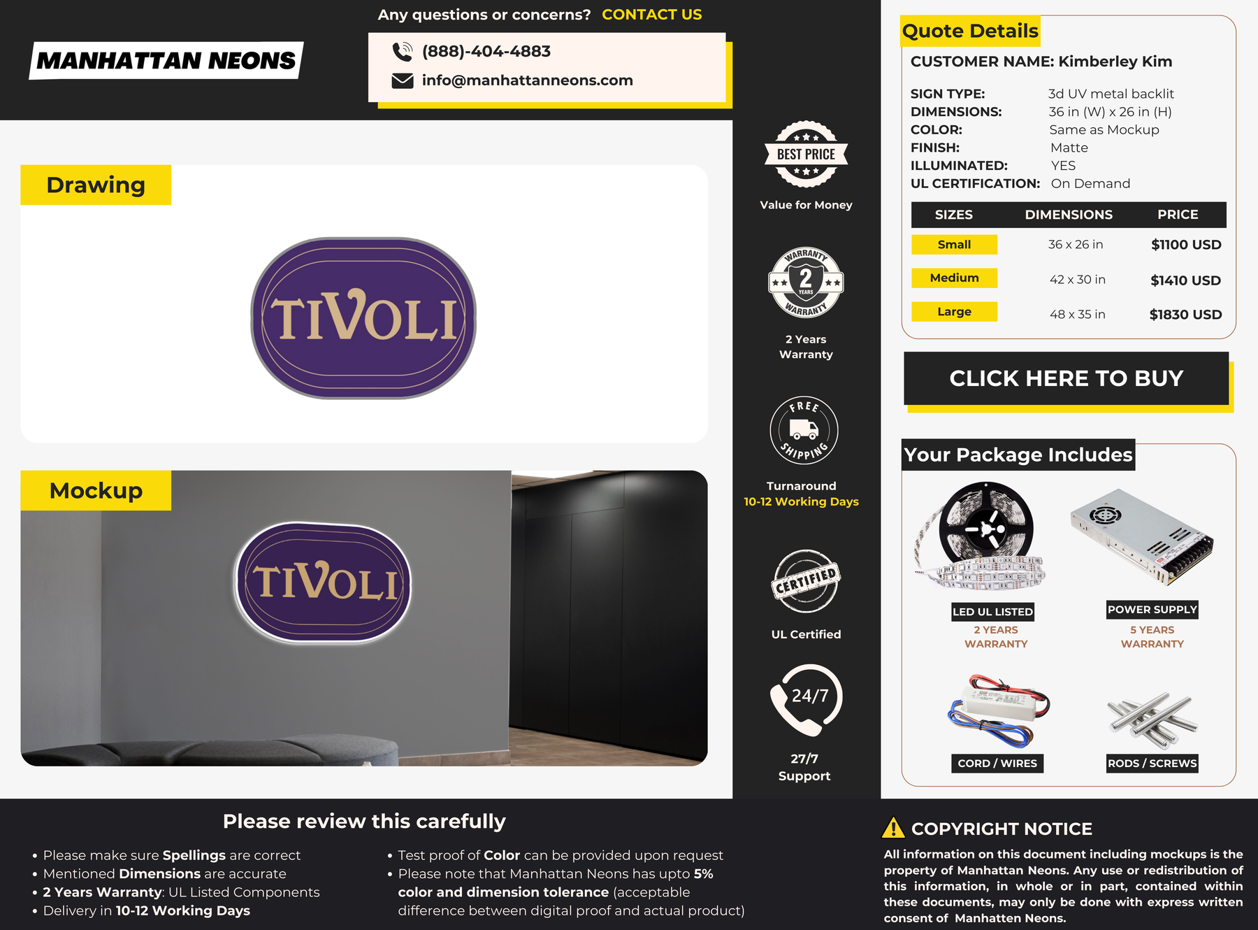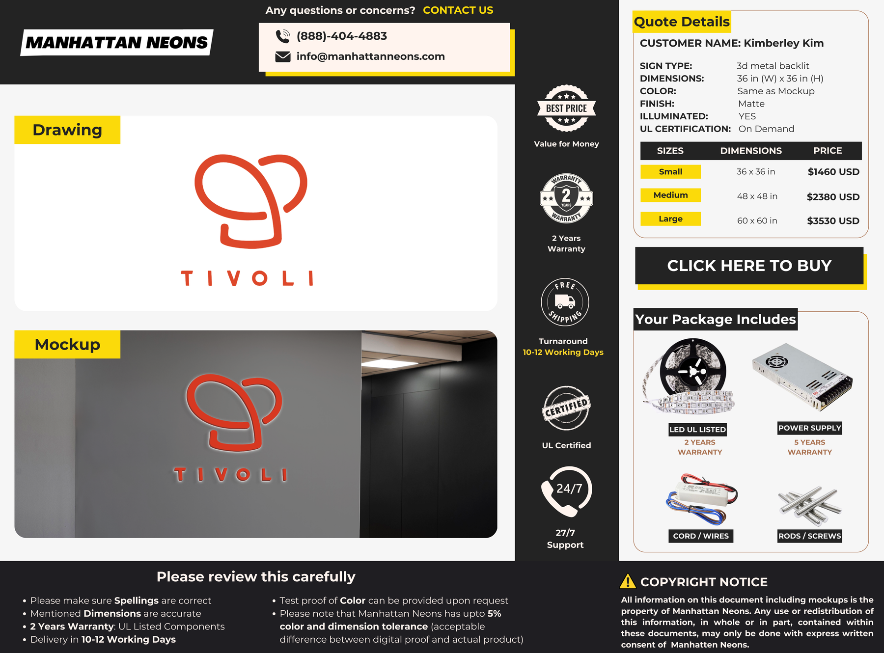 We offer 5 Years Warranty on all our neon signs. We care for all our customers to have a happy experience