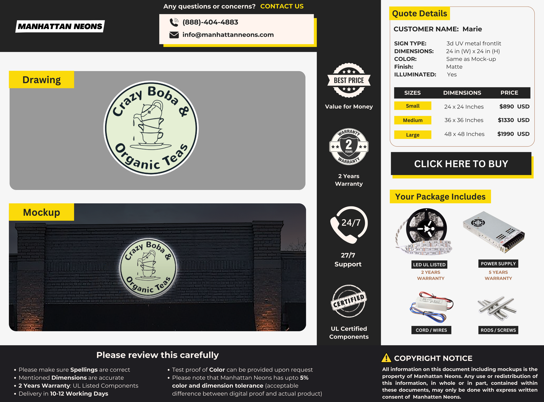 We offer 5 Years Warranty on all our neon signs. We care for all our customers to have a happy experience