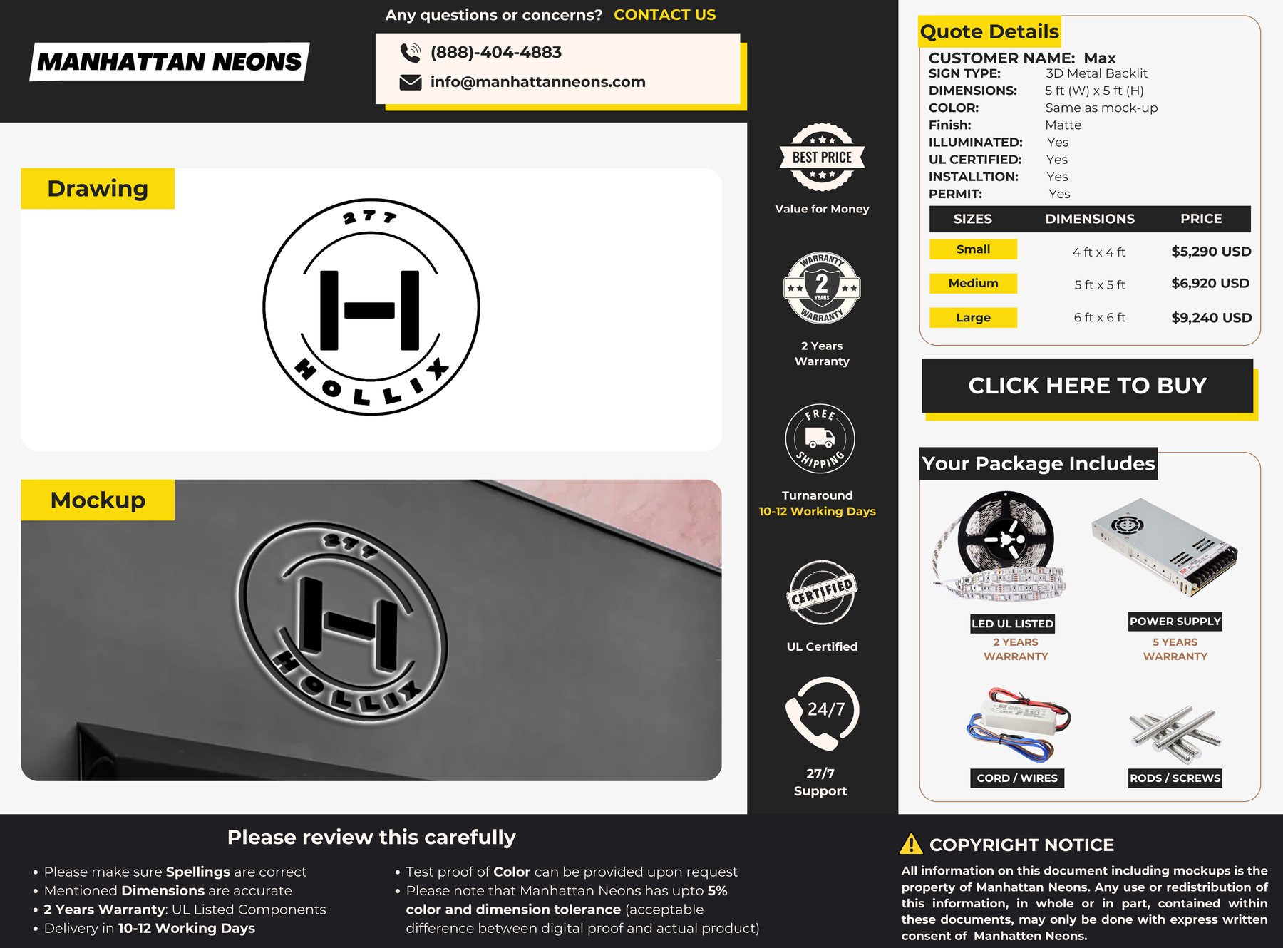 We offer 5 Years Warranty on all our neon signs. We care for all our customers to have a happy experience