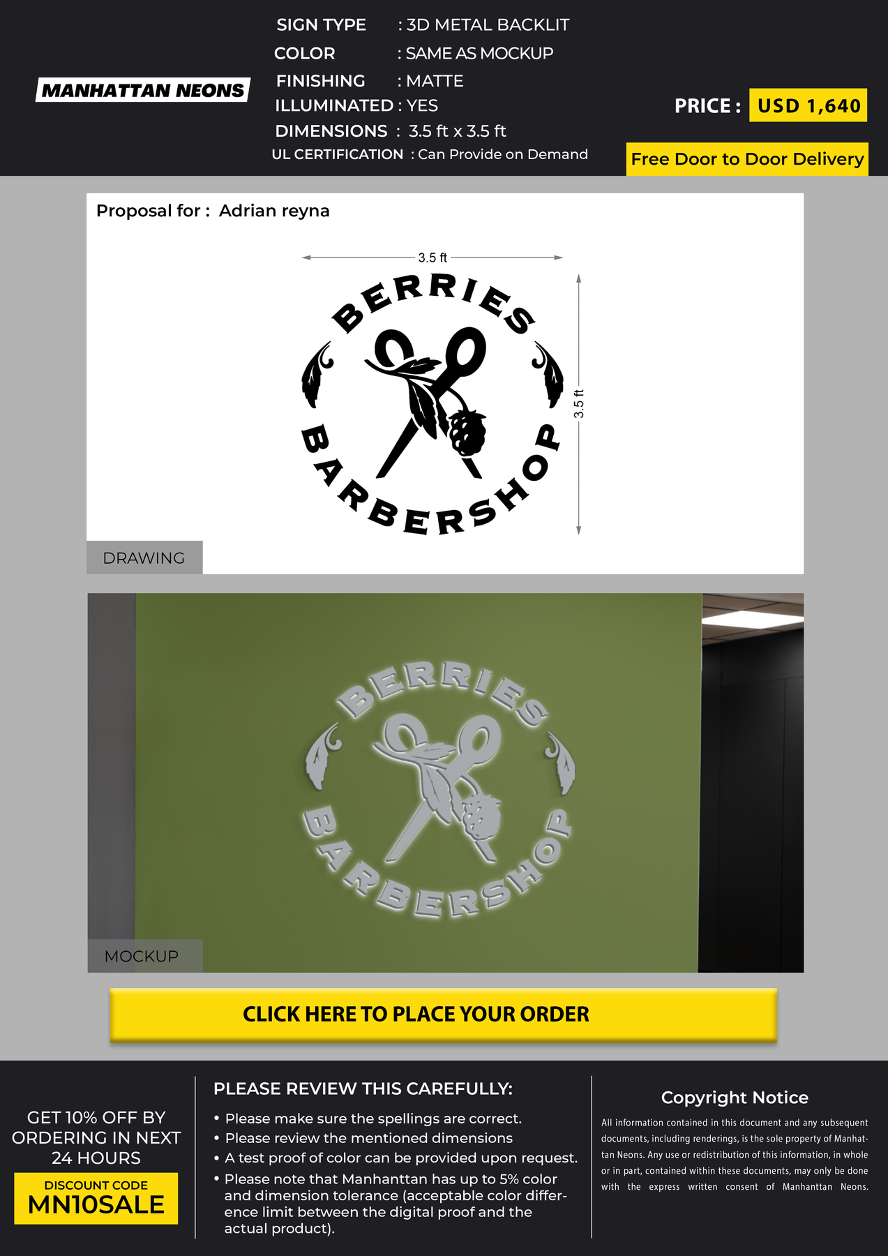 3D Metal Backlit Sign for Adrian reyna