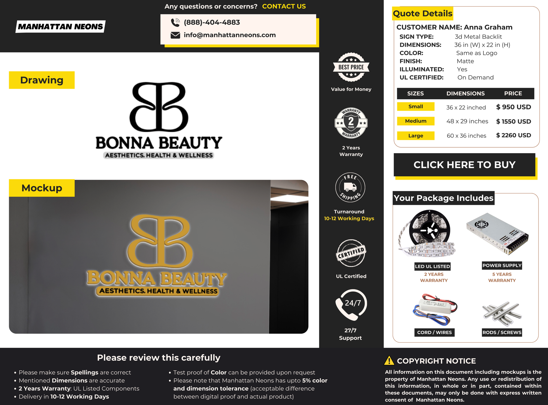 We offer 5 Years Warranty on all our neon signs. We care for all our customers to have a happy experience