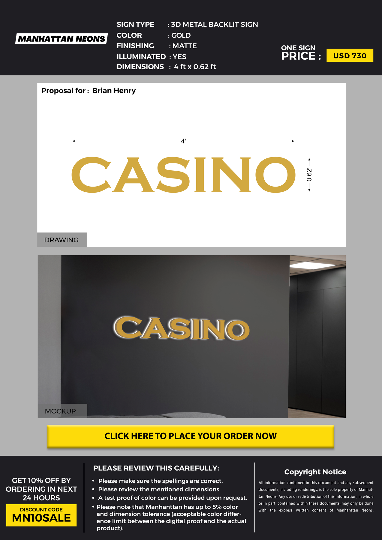 3D Metal Backlit Sign for Brian Henry