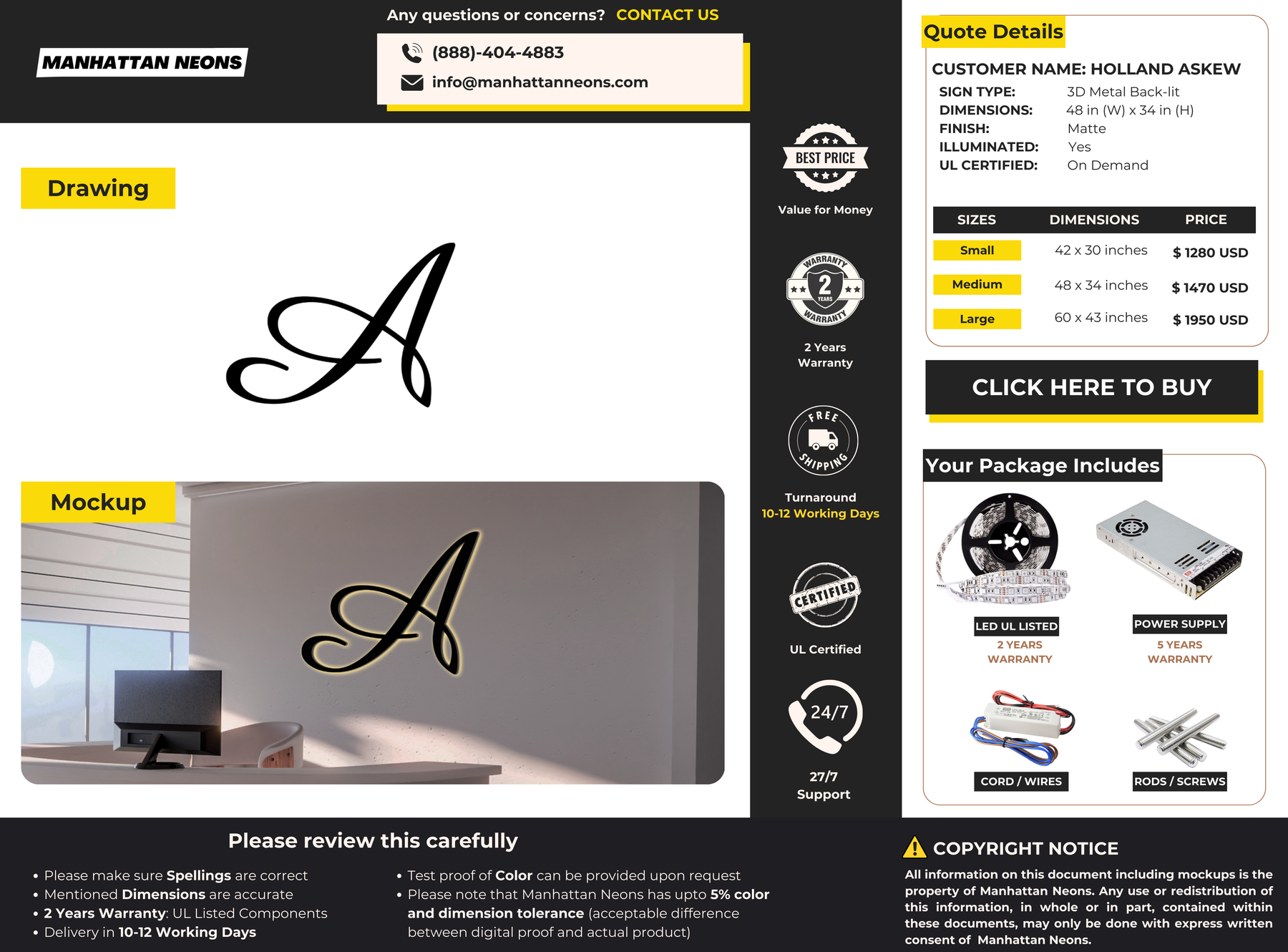 We offer 5 Years Warranty on all our neon signs. We care for all our customers to have a happy experience