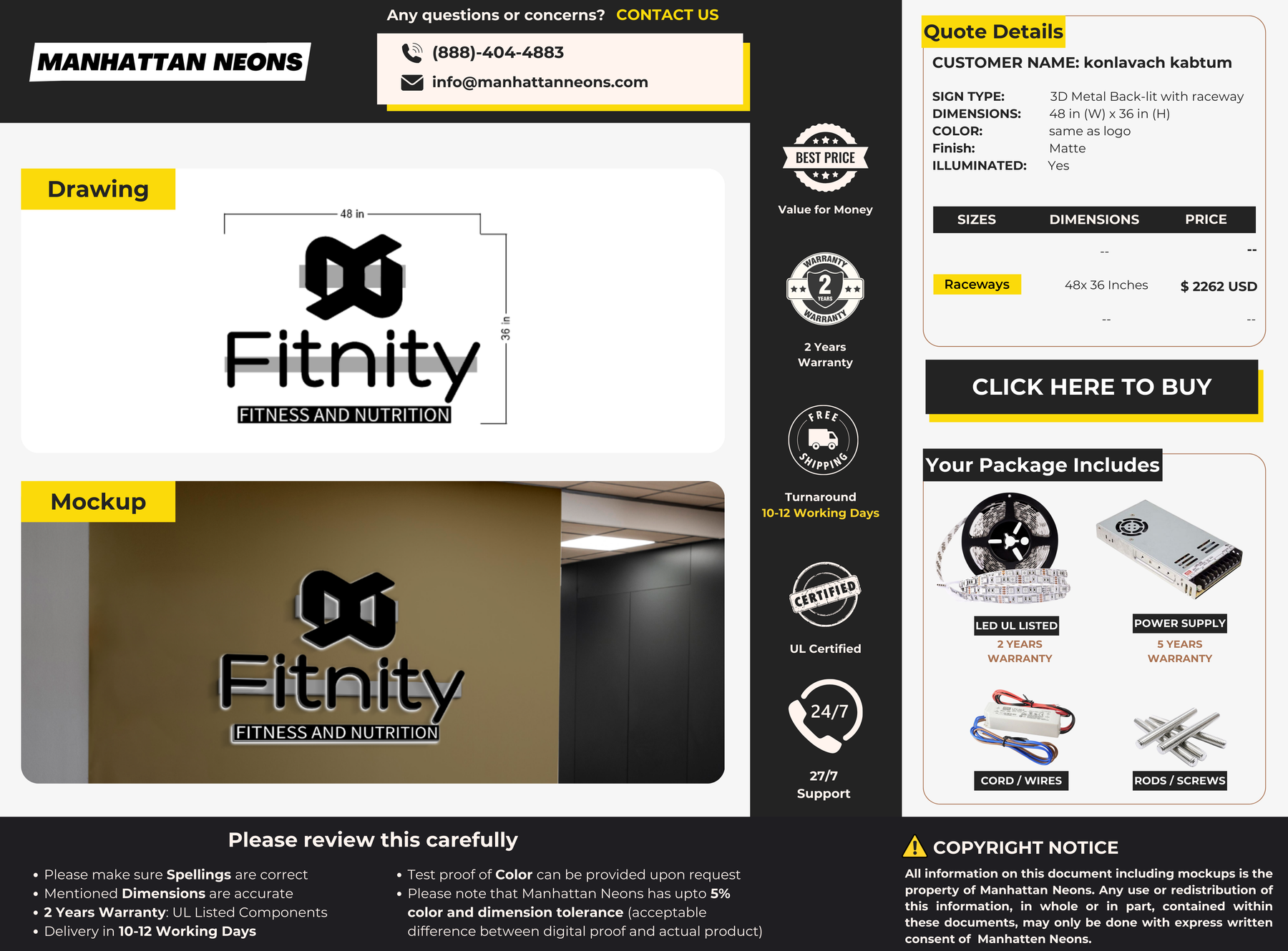 We offer 5 Years Warranty on all our neon signs. We care for all our customers to have a happy experience