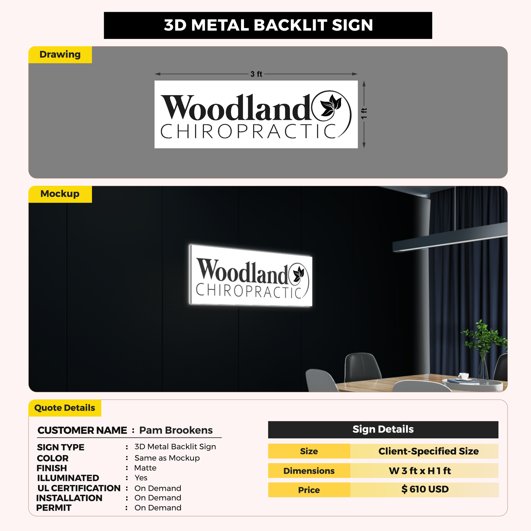 3D Metal Backlit Sign For Pam Brookens