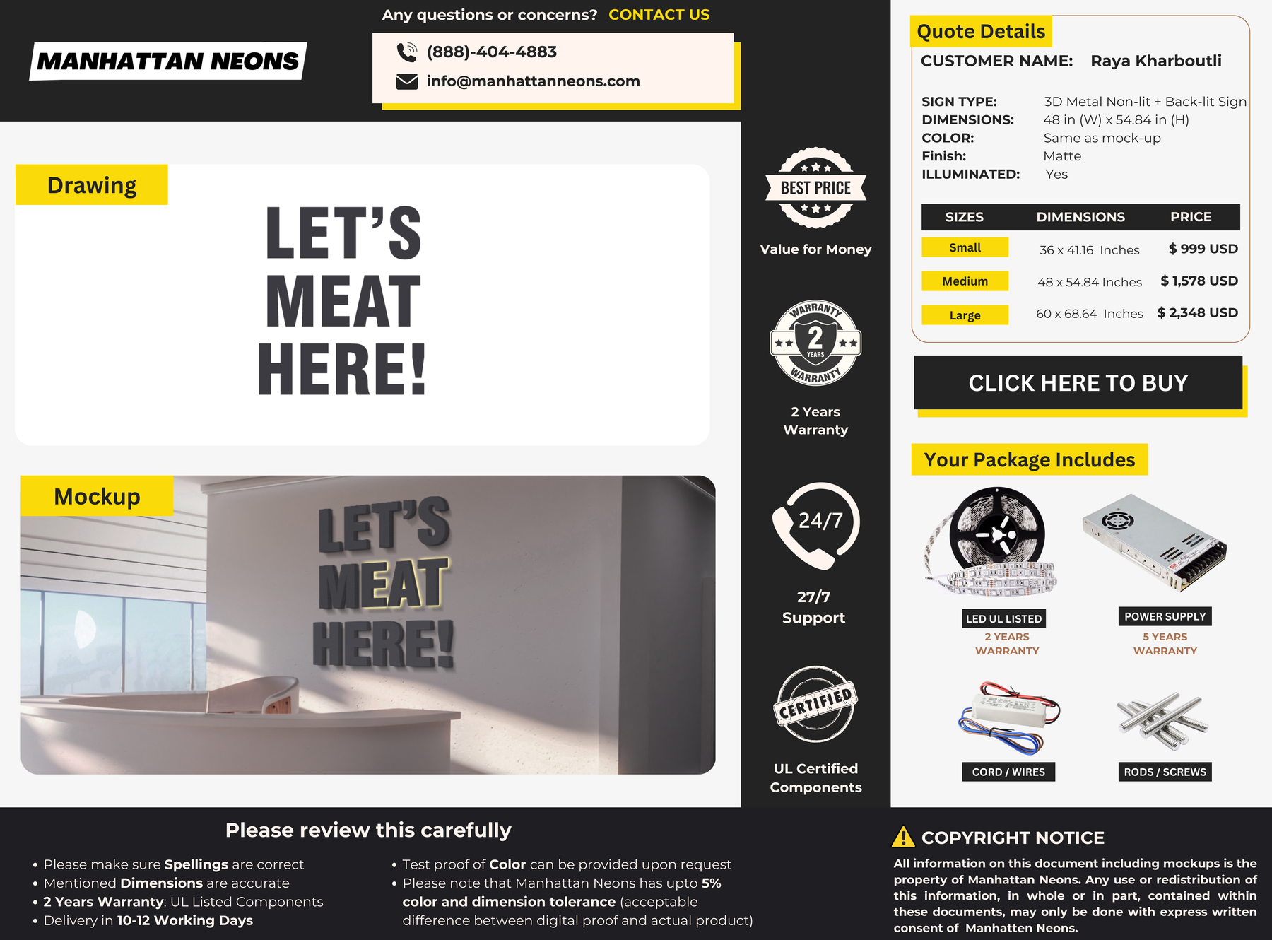 We offer 5 Years Warranty on all our neon signs. We care for all our customers to have a happy experience