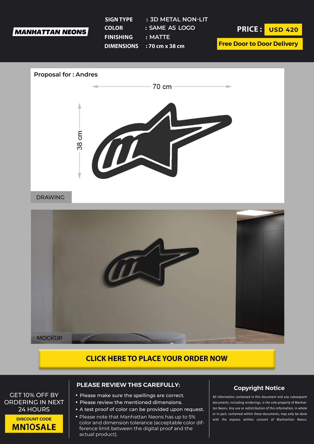 3d metal non-lit Dimensions : Same as mentionedColor : Black