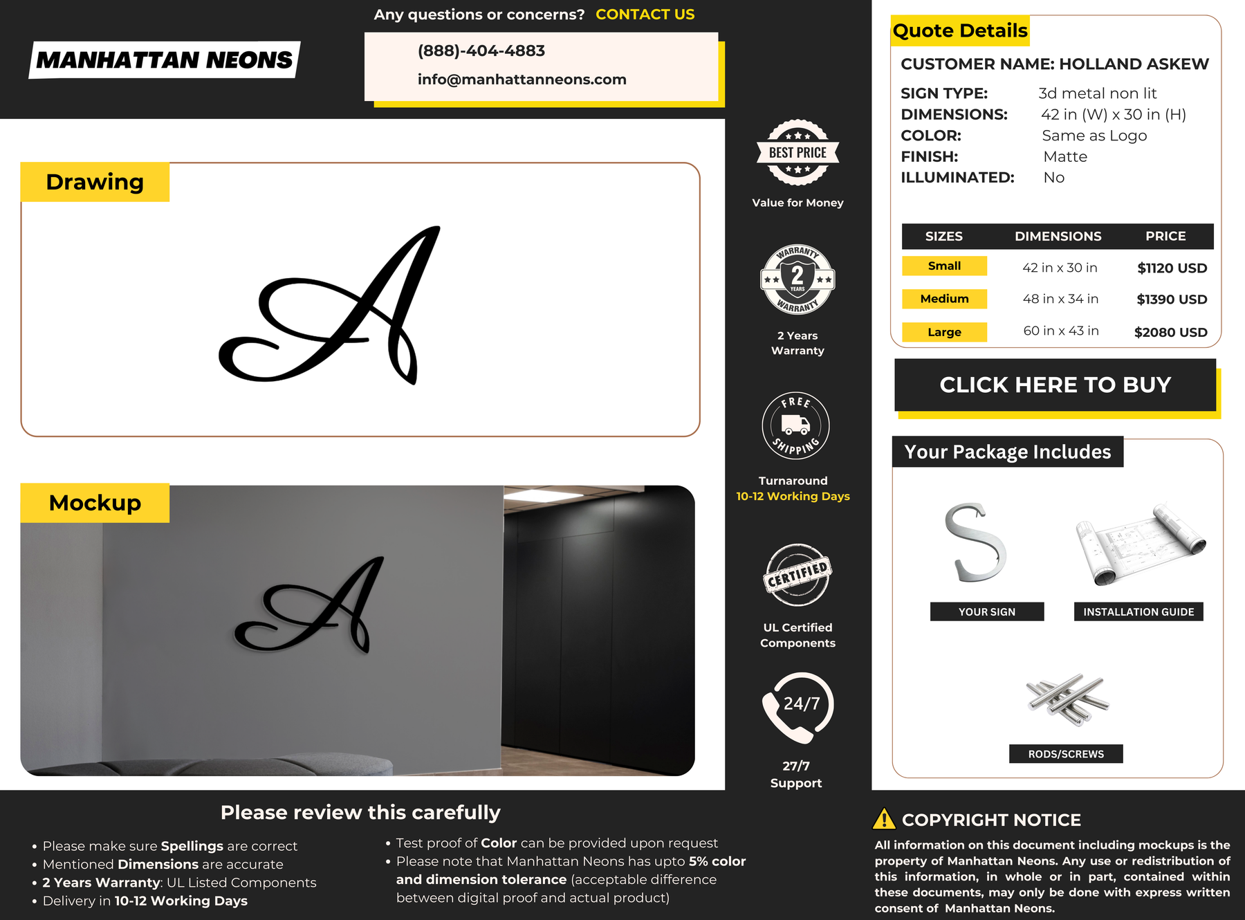 We offer 5 Years Warranty on all our neon signs. We care for all our customers to have a happy experience