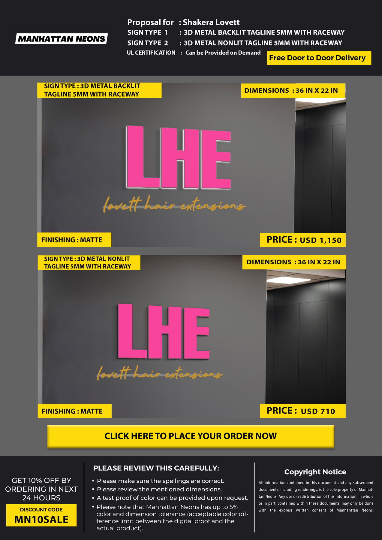 3d signDimensios : Same as mentionedColor : Same as mock-up