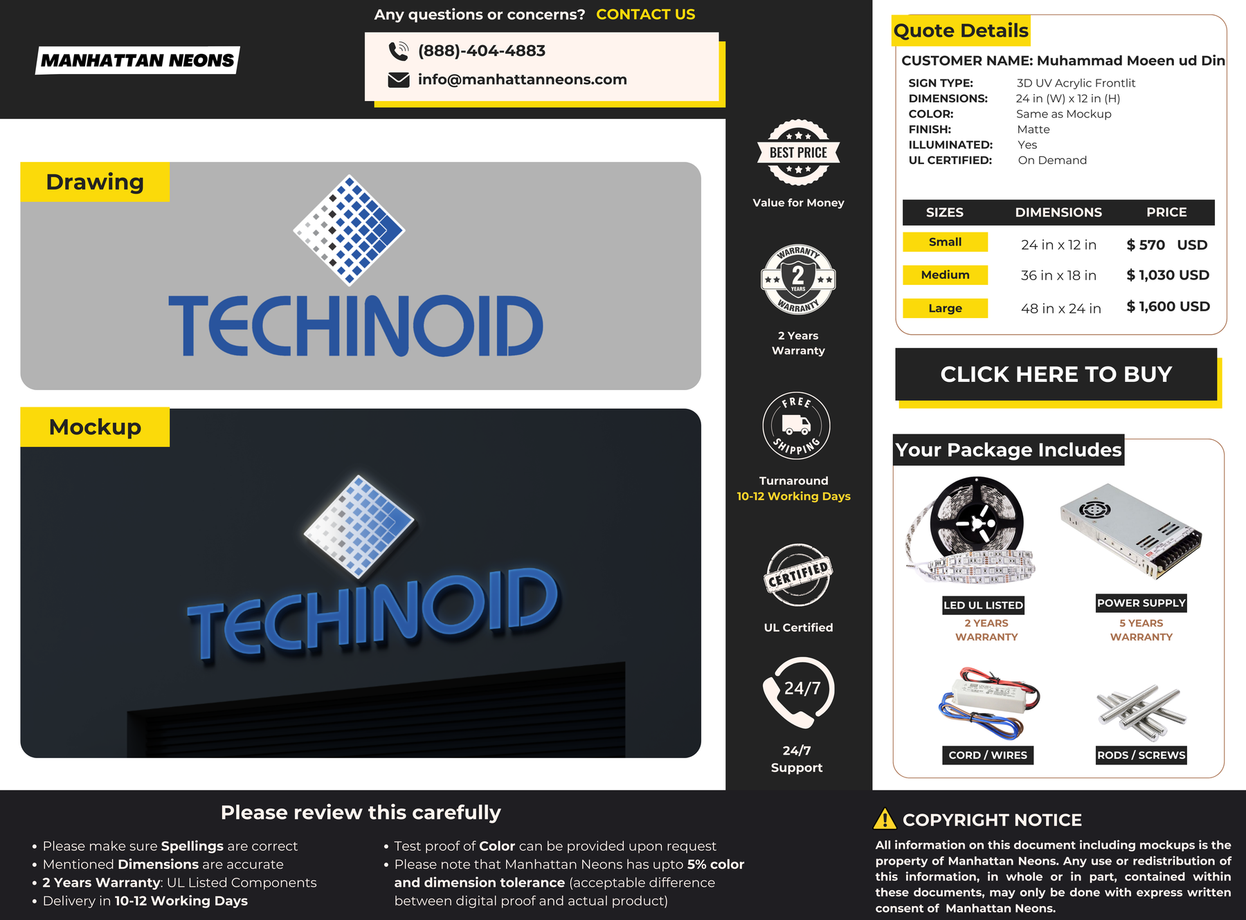 We offer 5 Years Warranty on all our neon signs. We care for all our customers to have a happy experience