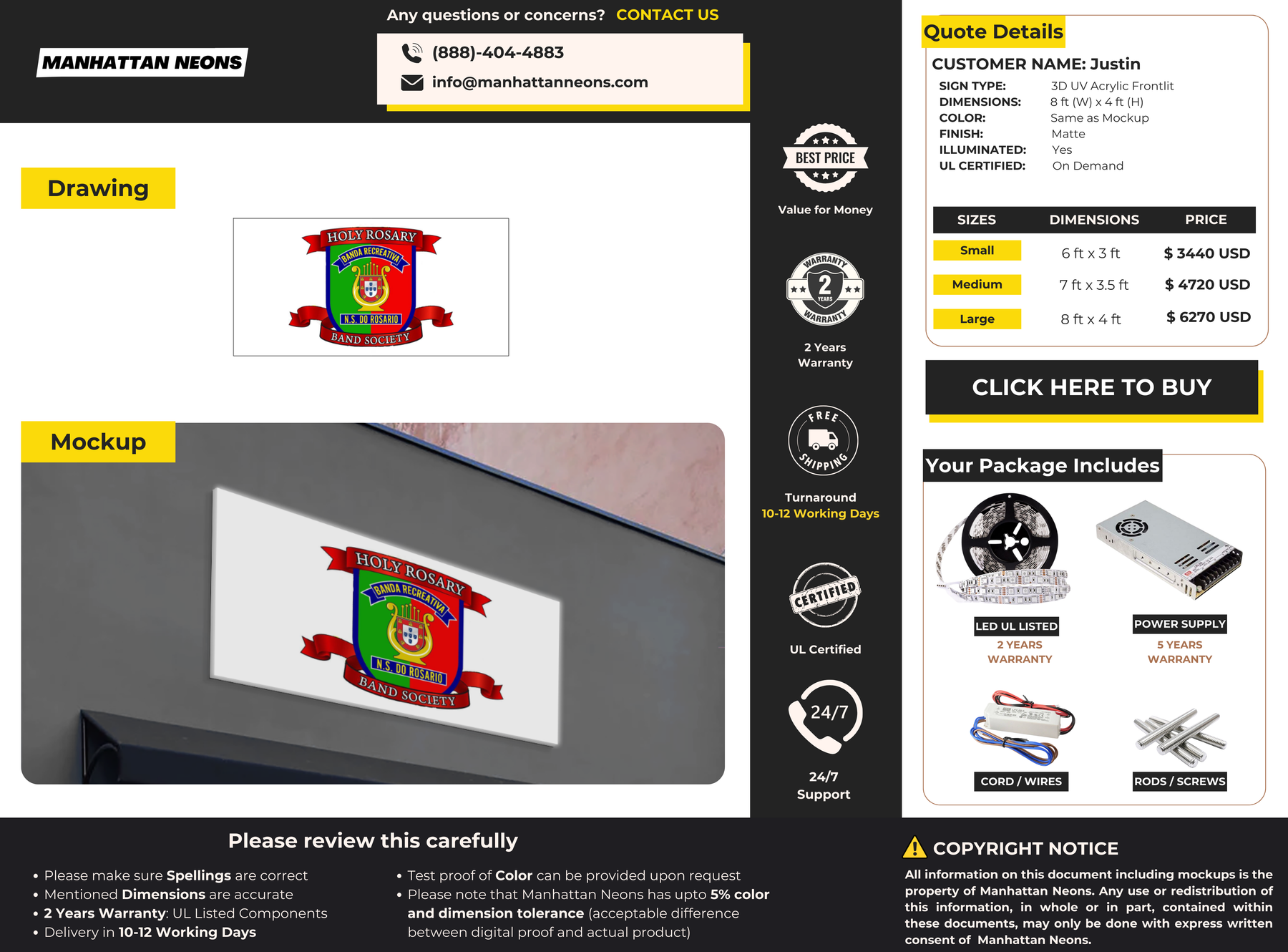 We offer 5 Years Warranty on all our neon signs. We care for all our customers to have a happy experience