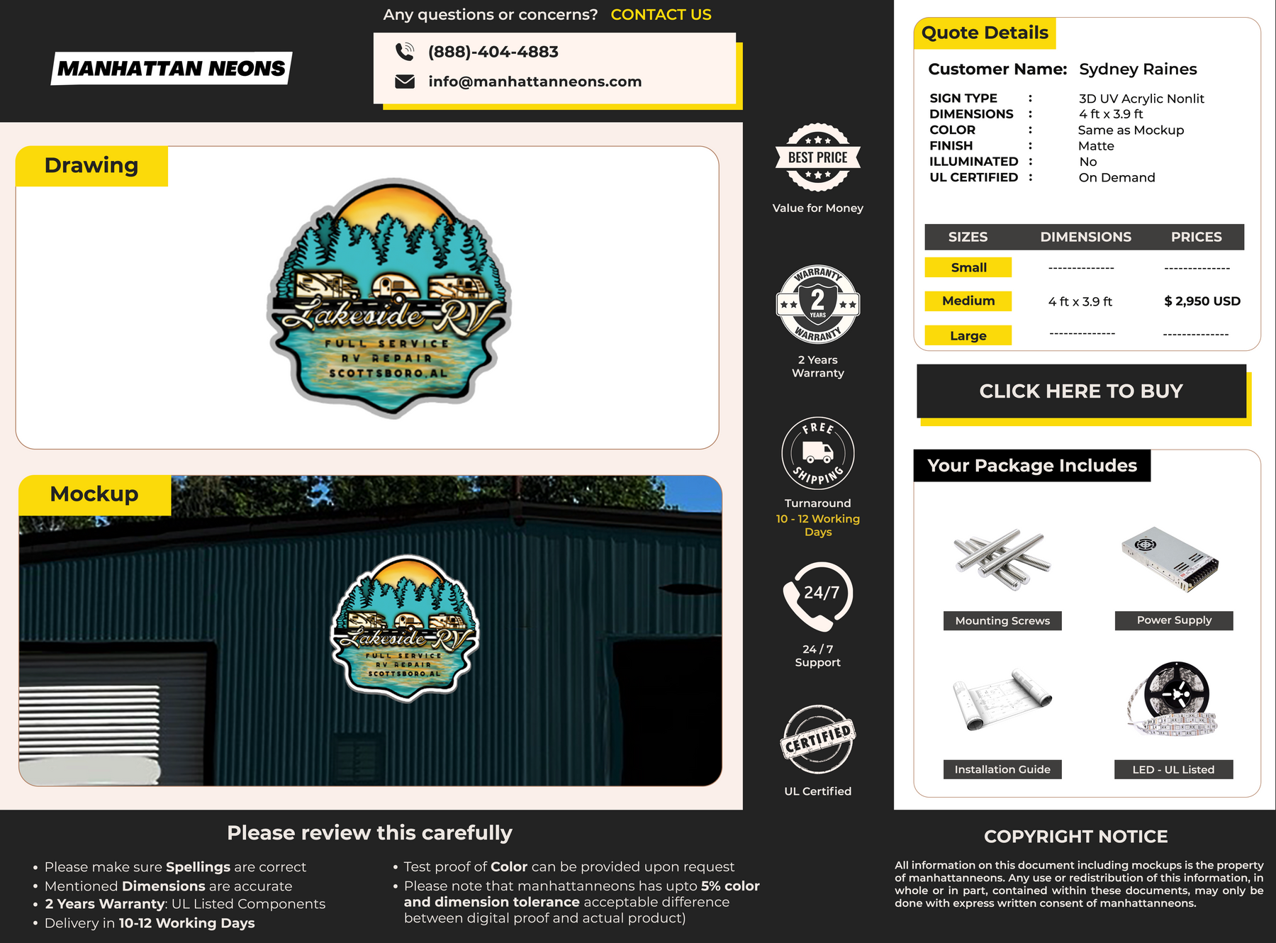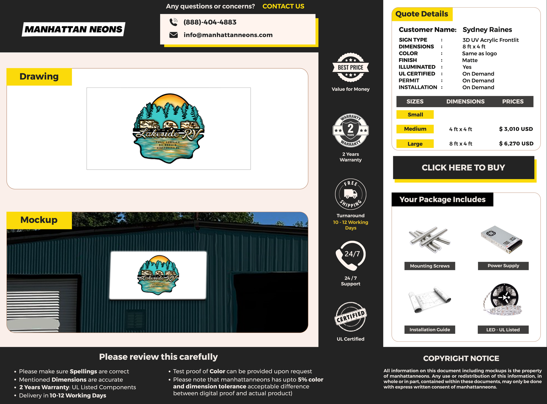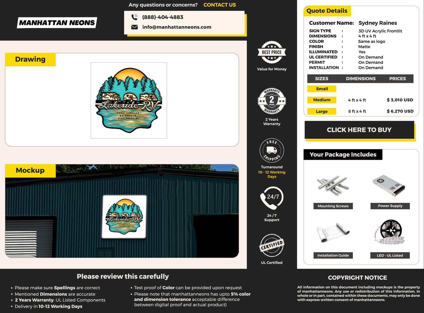 We offer 5 Years Warranty on all our neon signs. We care for all our customers to have a happy experience