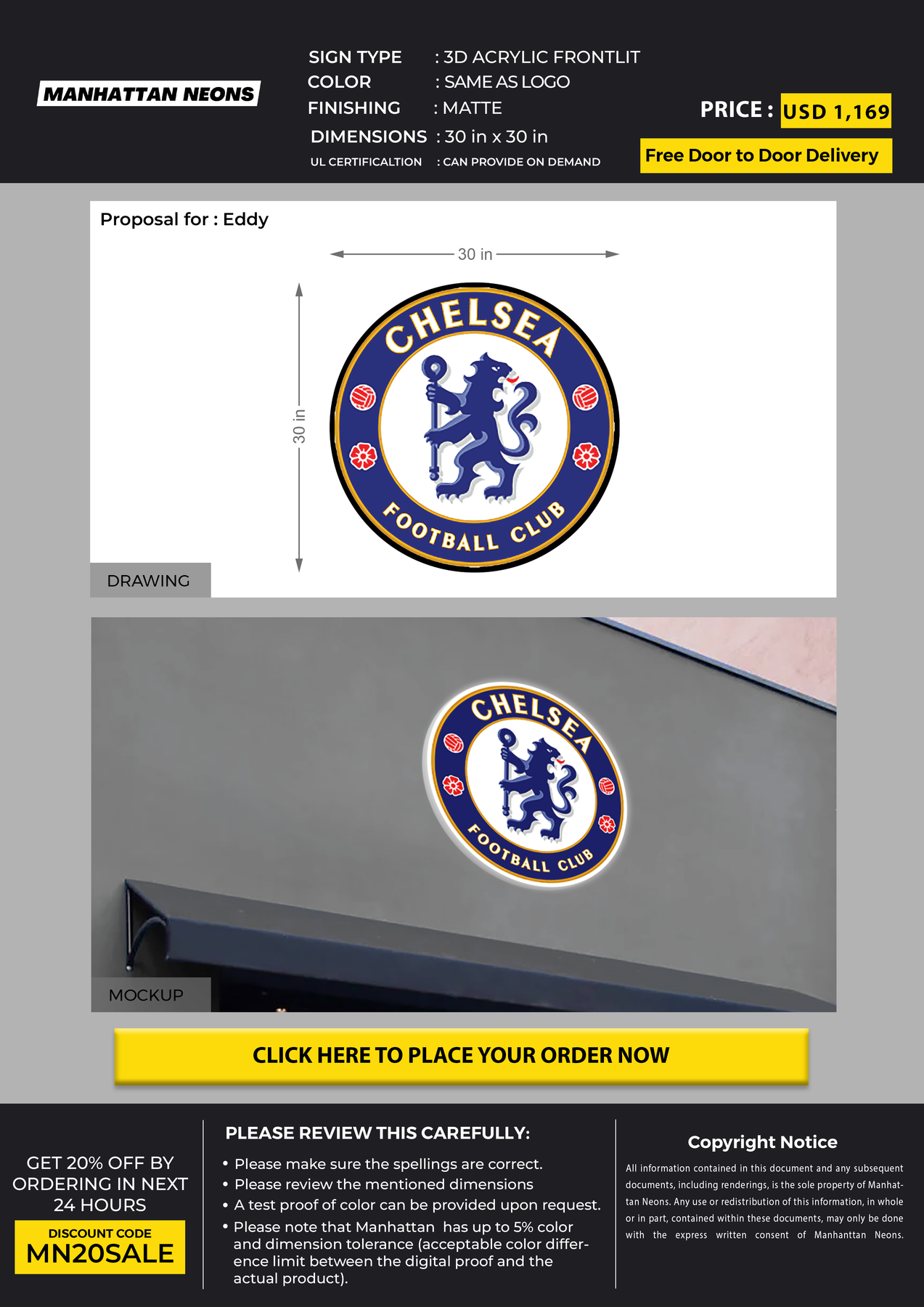 3D UV Acrylic Frontlit sign for Eddy