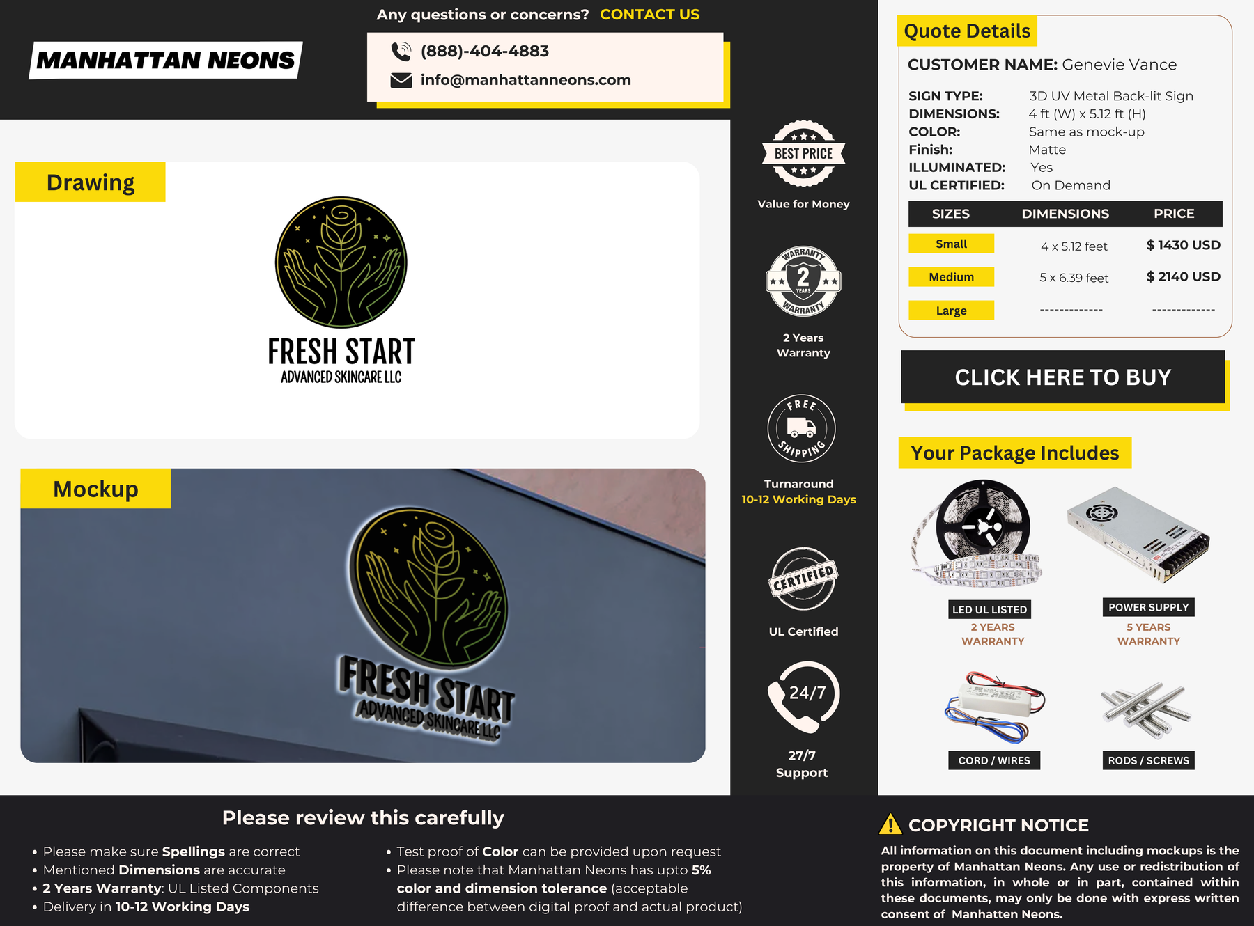We offer 5 Years Warranty on all our neon signs. We care for all our customers to have a happy experience