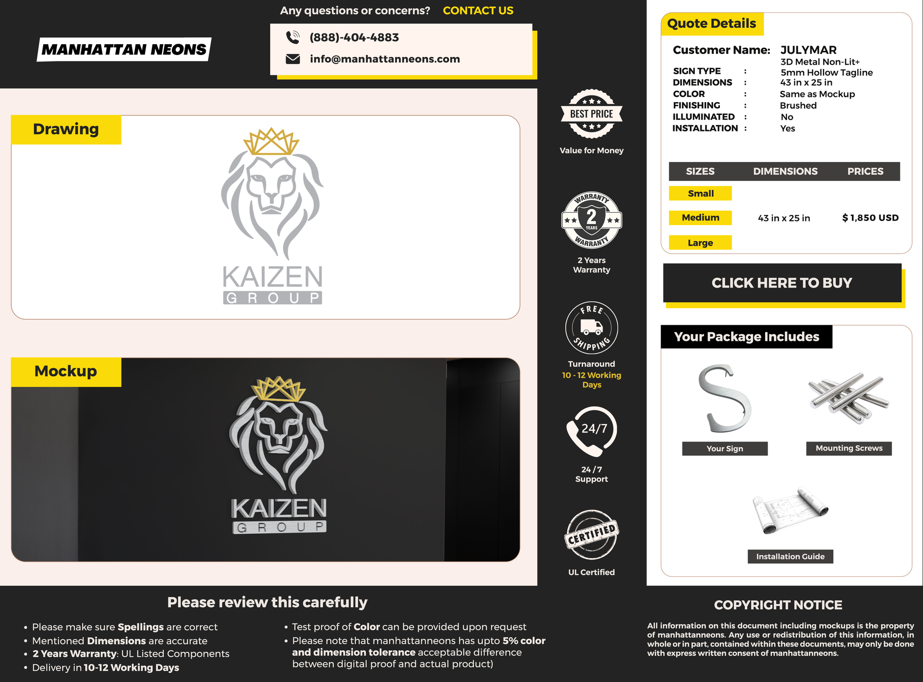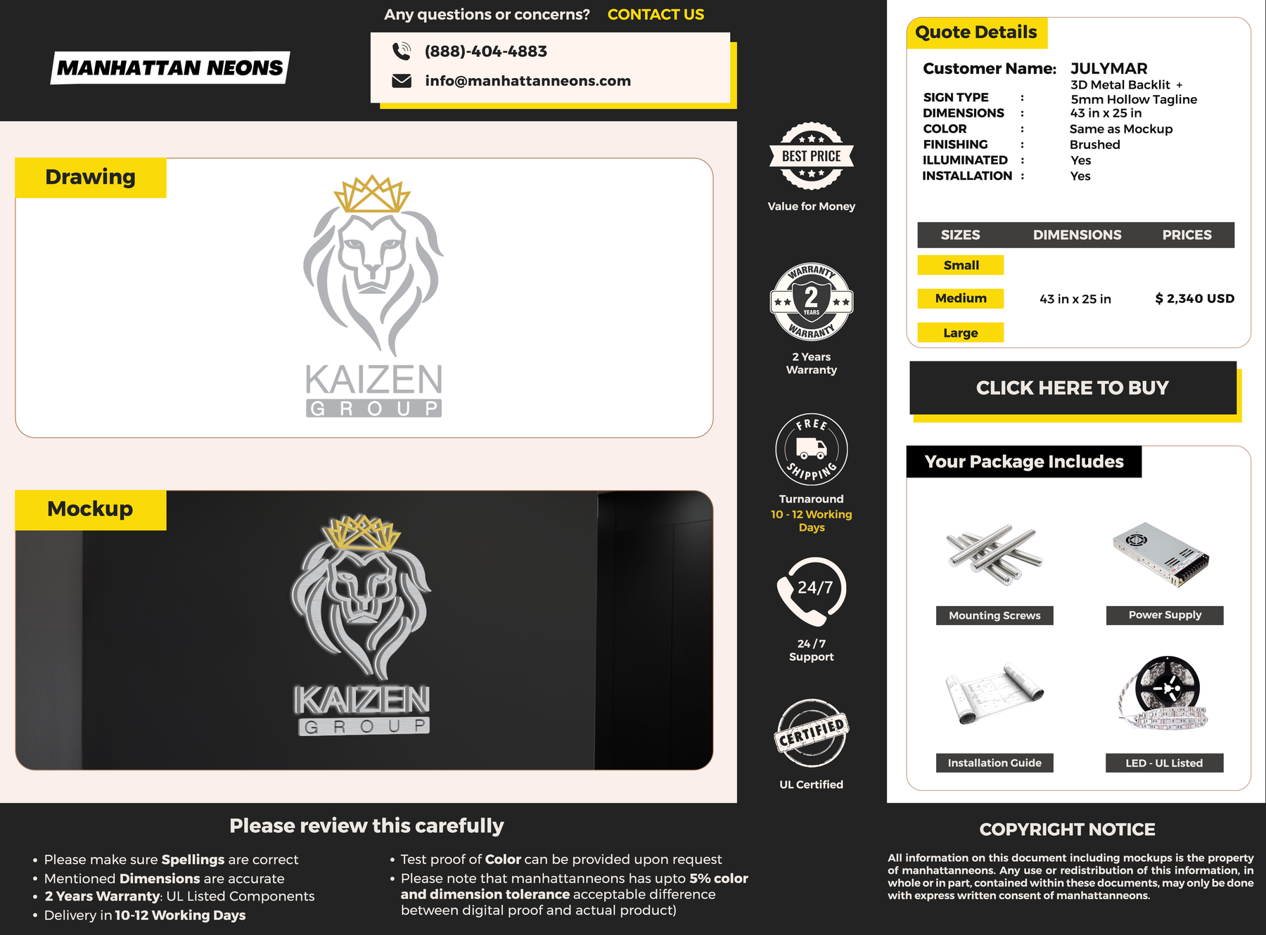 We offer 5 Years Warranty on all our neon signs. We care for all our customers to have a happy experience