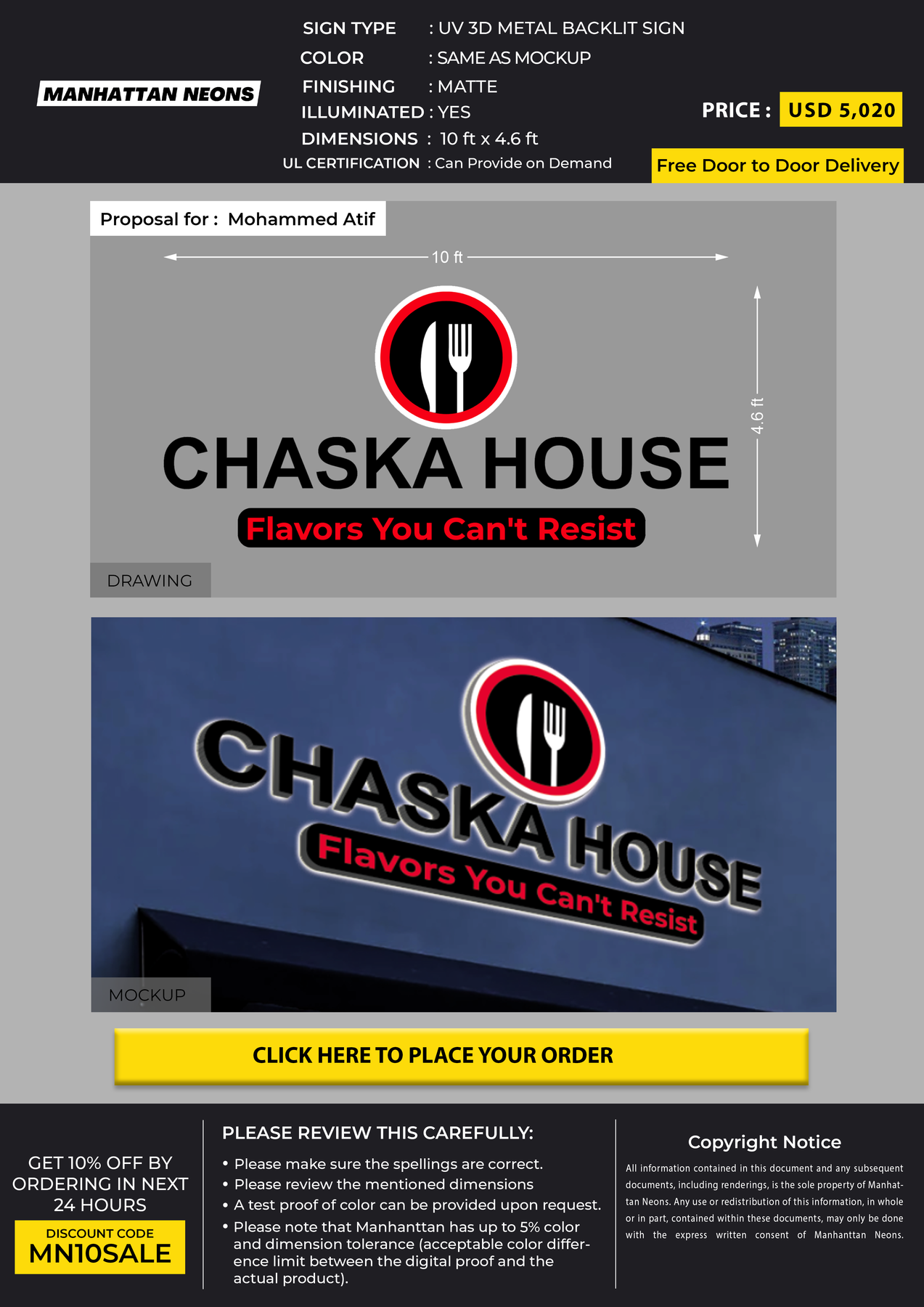 3D UV Metal Backlit Sign For Mohammed Atif