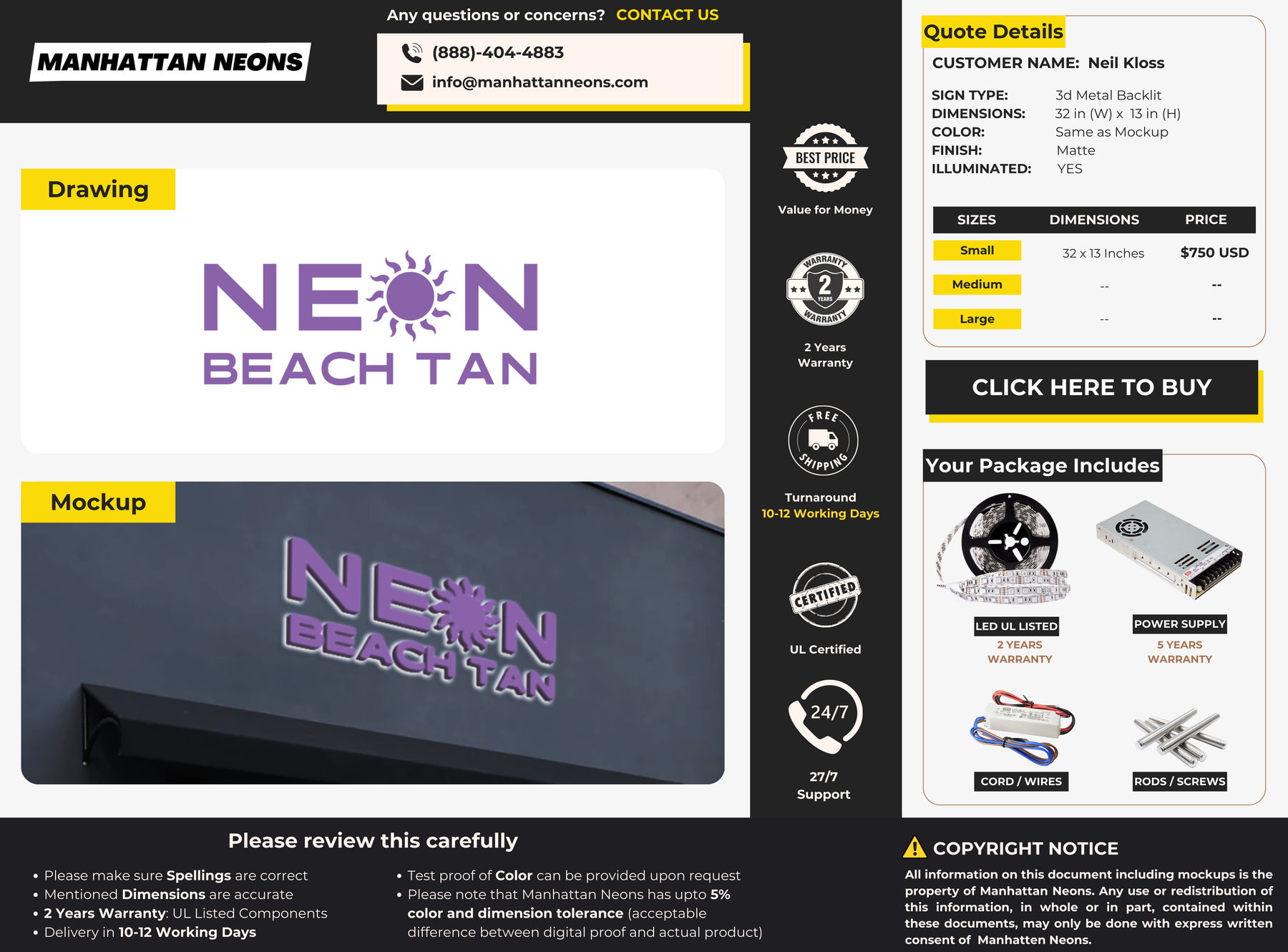 We offer 5 Years Warranty on all our neon signs. We care for all our customers to have a happy experience