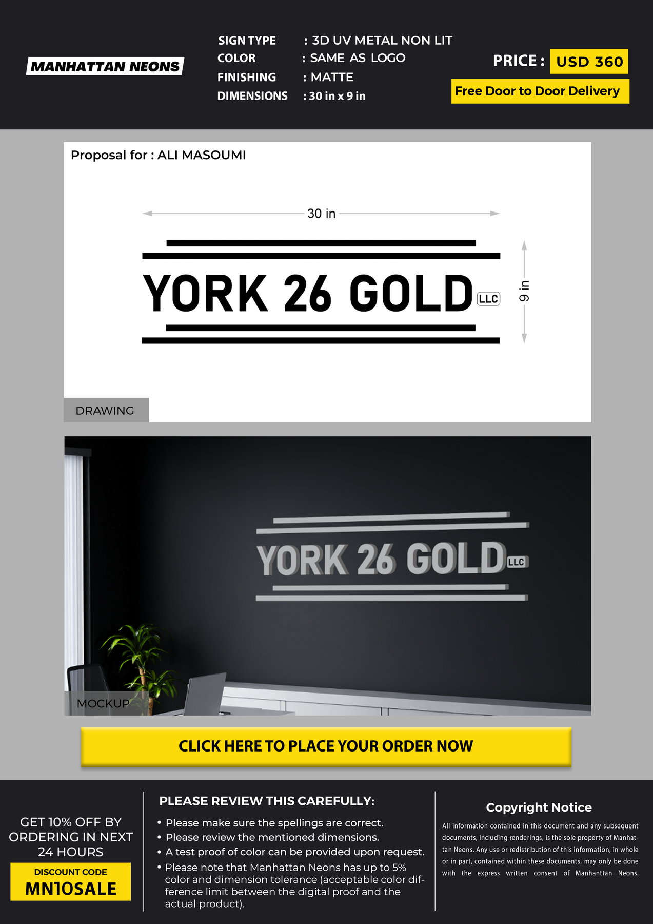 3D UV Metal Sign for ALI MASOUMI