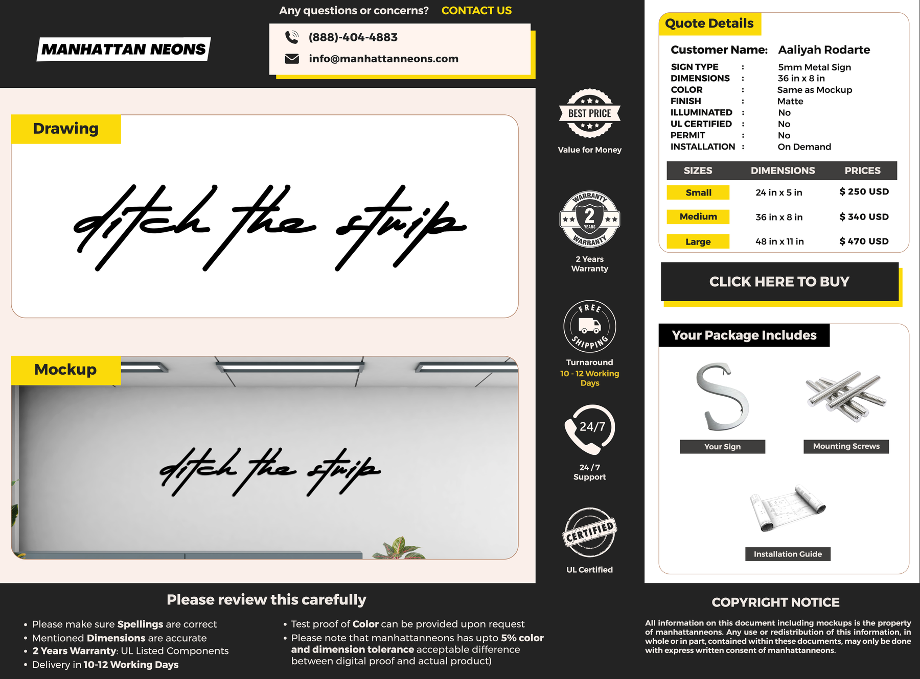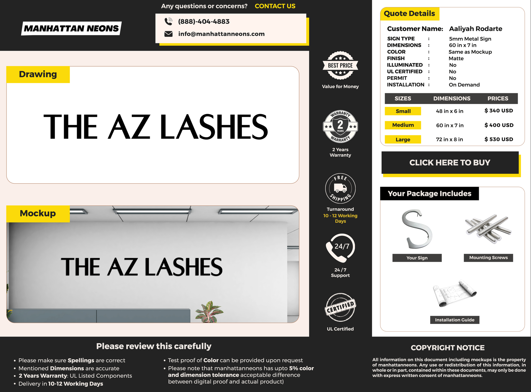 We offer 5 Years Warranty on all our neon signs. We care for all our customers to have a happy experience
