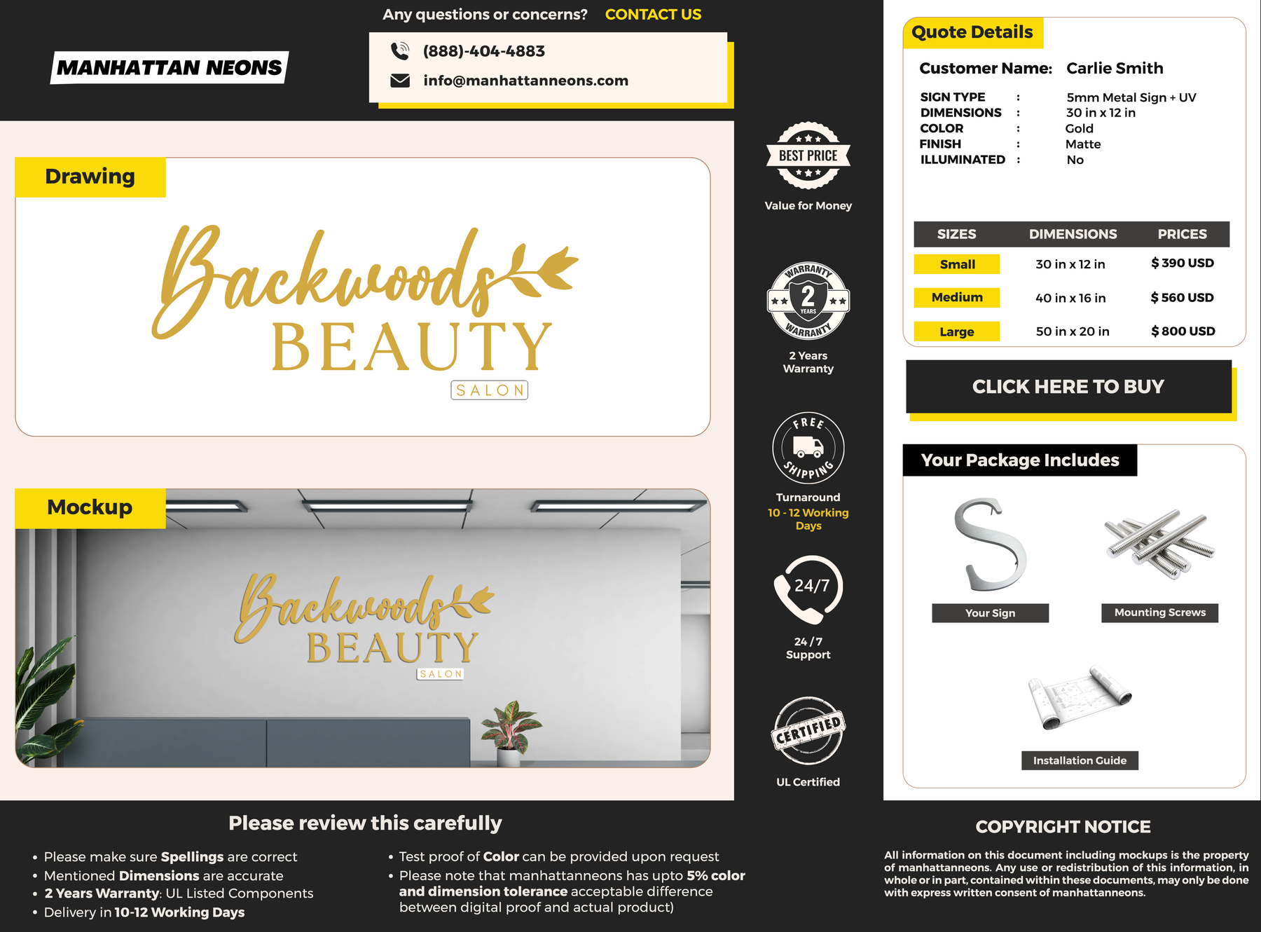 We offer 5 Years Warranty on all our neon signs. We care for all our customers to have a happy experience