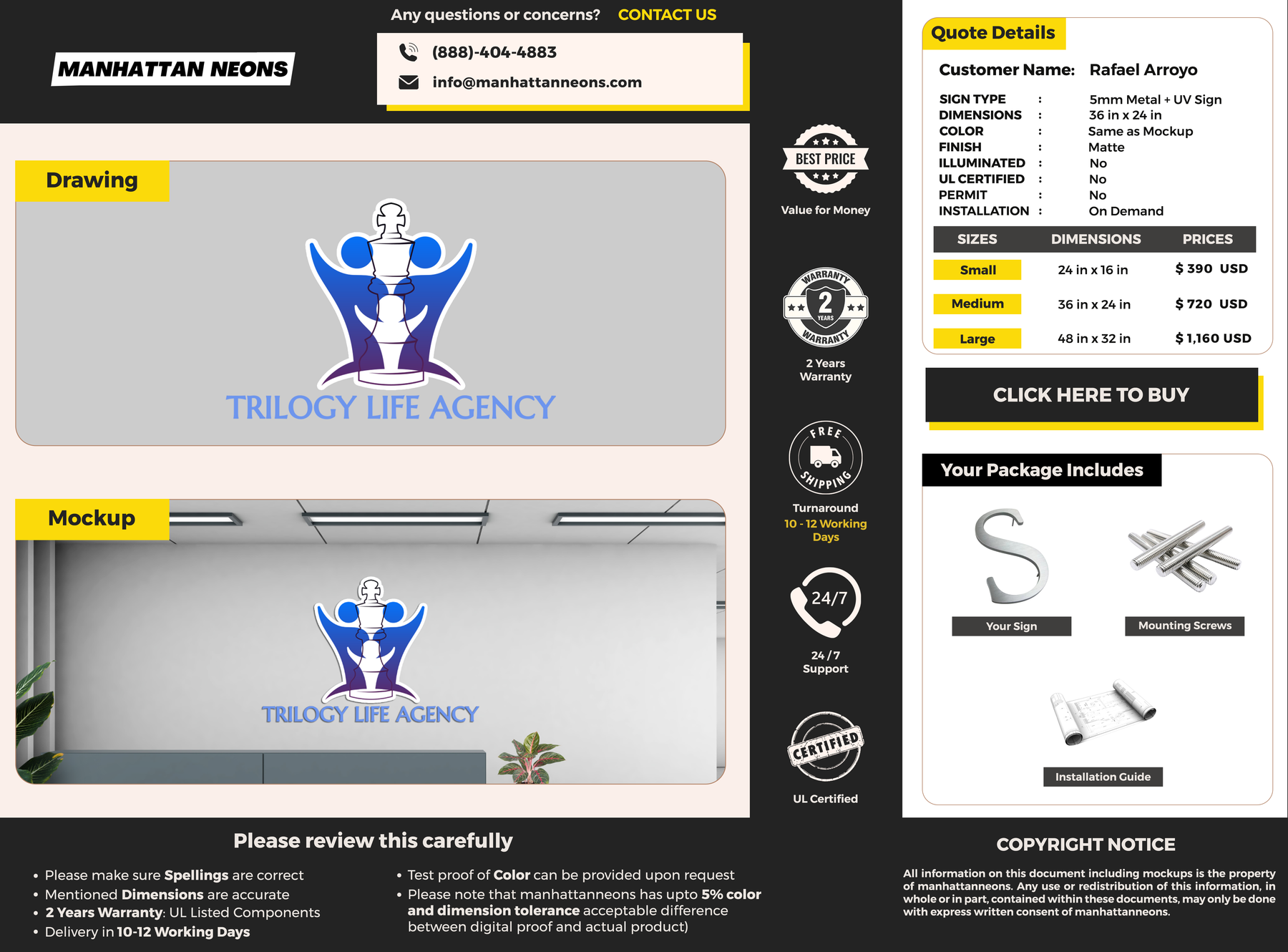 We offer 5 Years Warranty on all our neon signs. We care for all our customers to have a happy experience