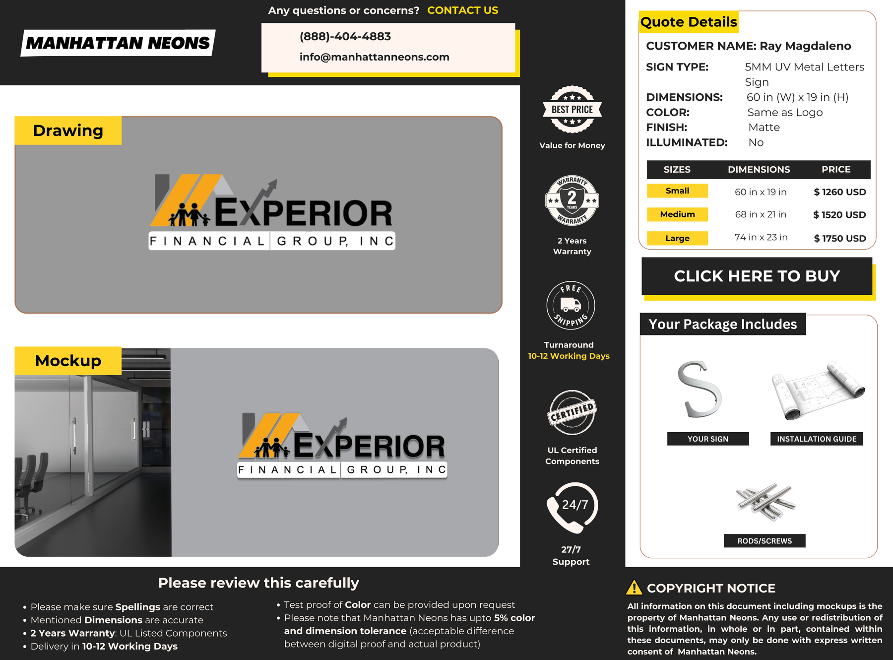 We offer 5 Years Warranty on all our neon signs. We care for all our customers to have a happy experience
