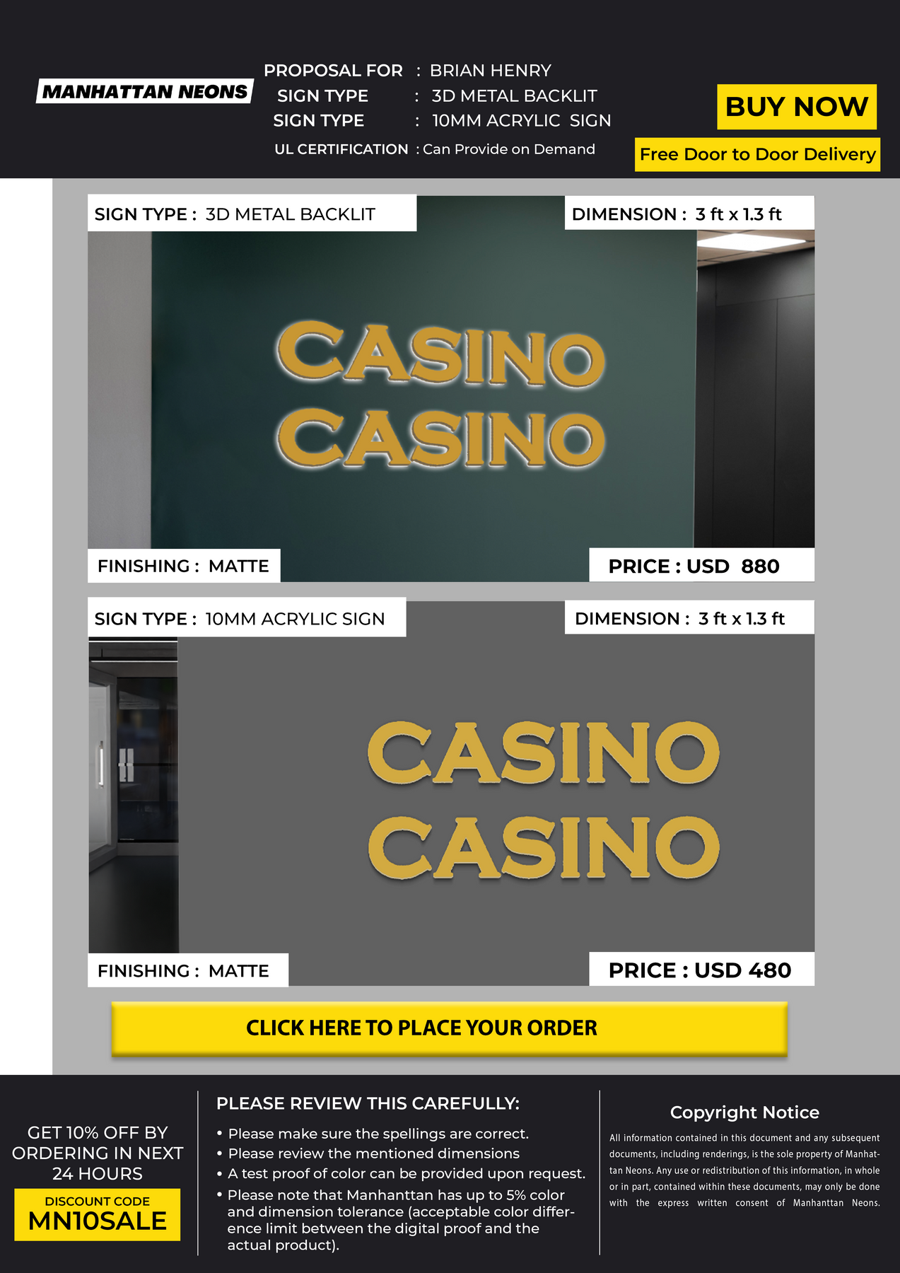 We offer 5 Years Warranty on all our neon signs. We care for all our customers to have a happy experience