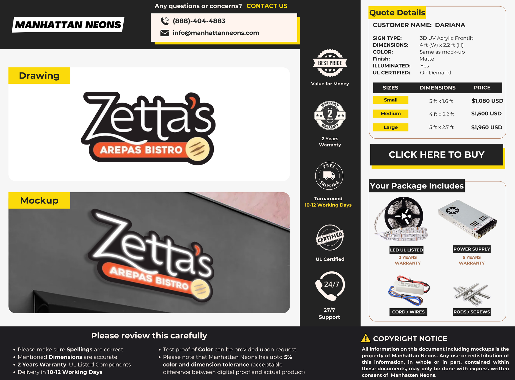 We offer 5 Years Warranty on all our neon signs. We care for all our customers to have a happy experience