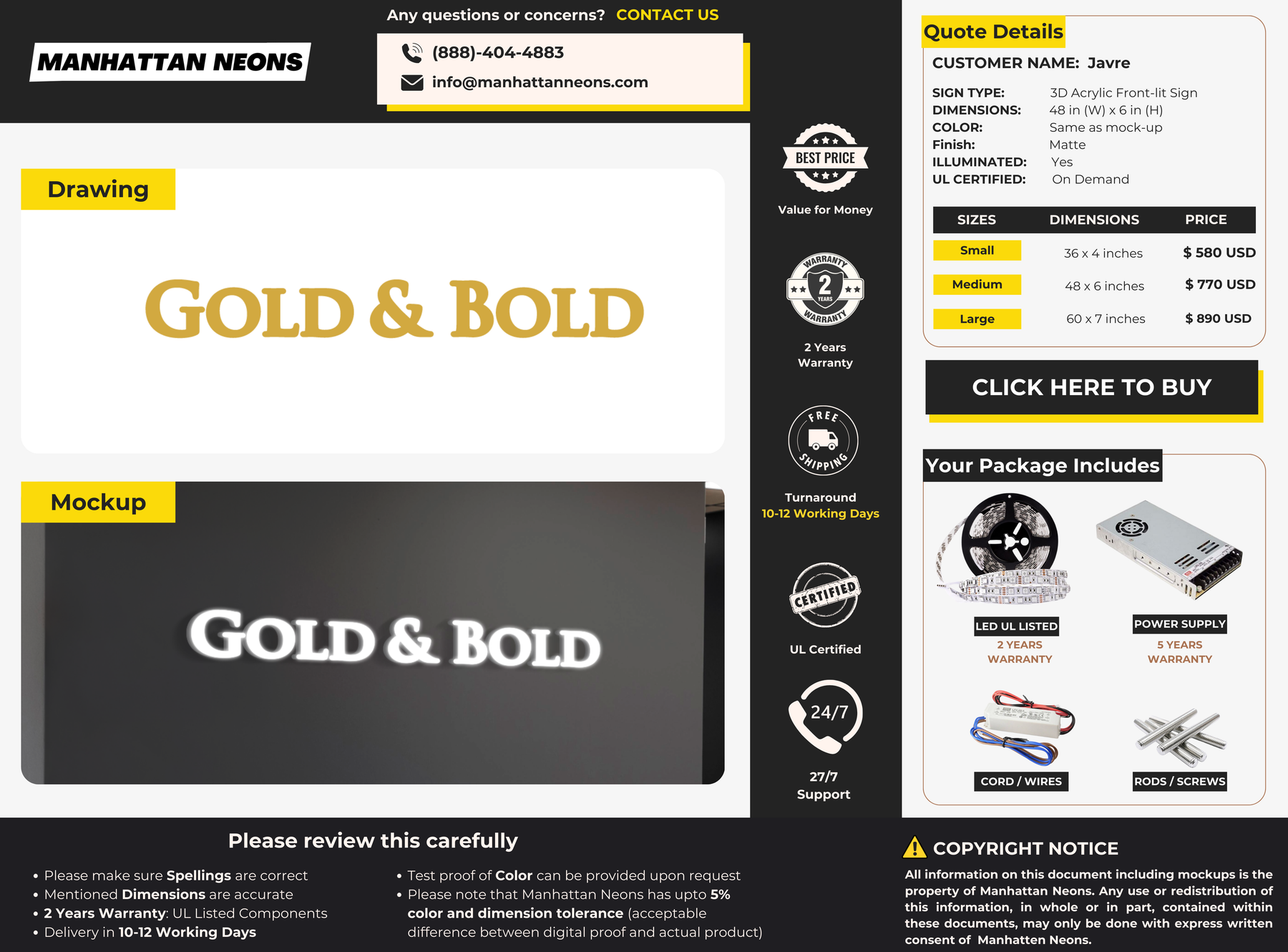 We offer 5 Years Warranty on all our neon signs. We care for all our customers to have a happy experience