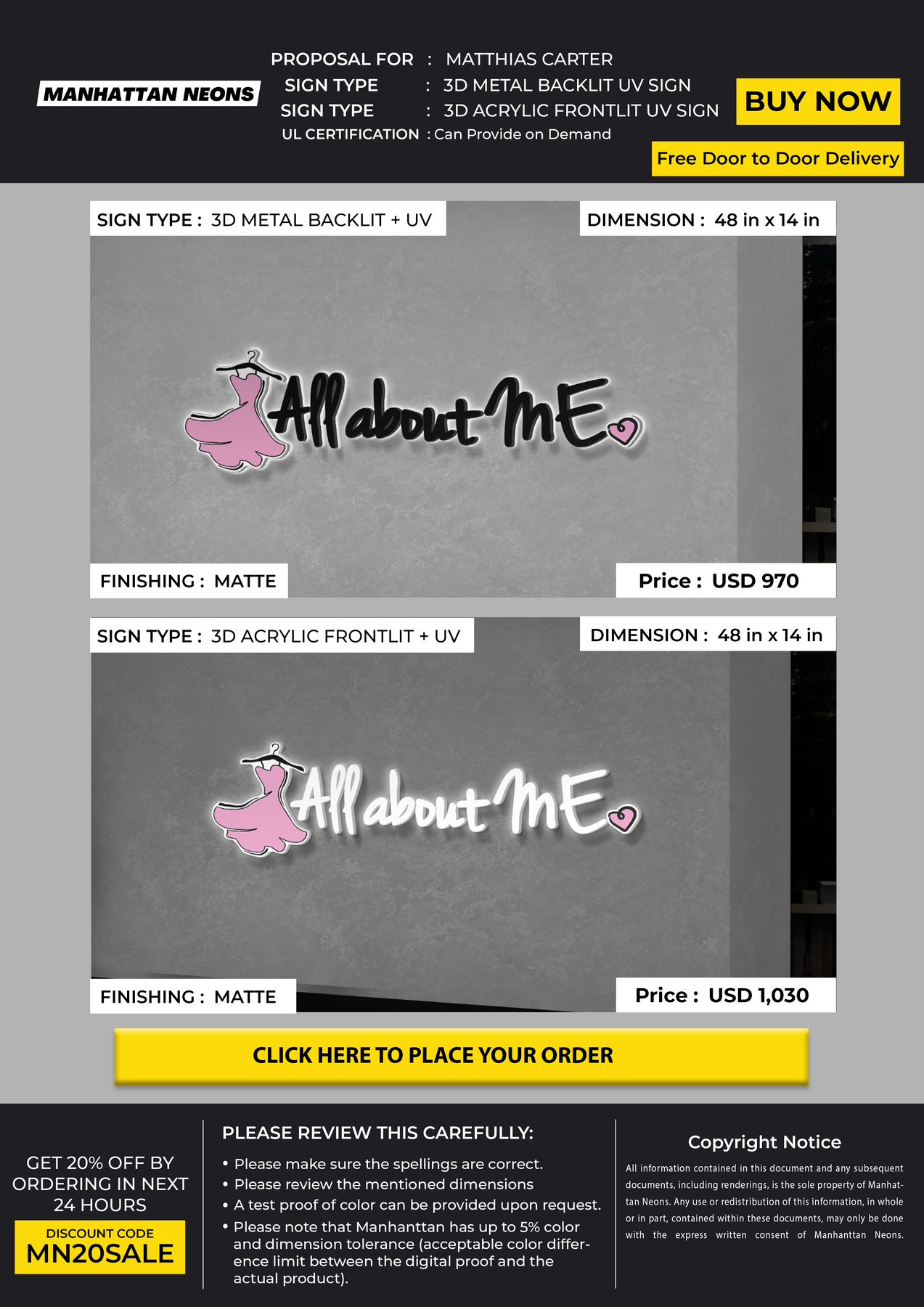 We offer 5 Years Warranty on all our neon signs. We care for all our customers to have a happy experience