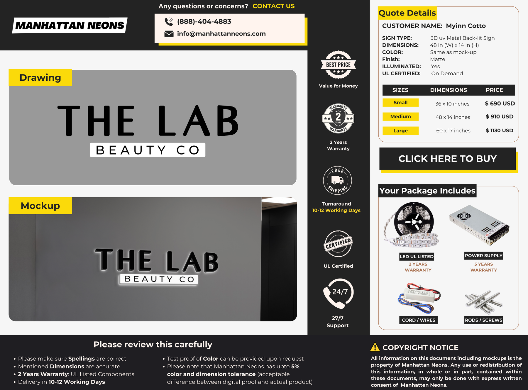 We offer 5 Years Warranty on all our neon signs. We care for all our customers to have a happy experience