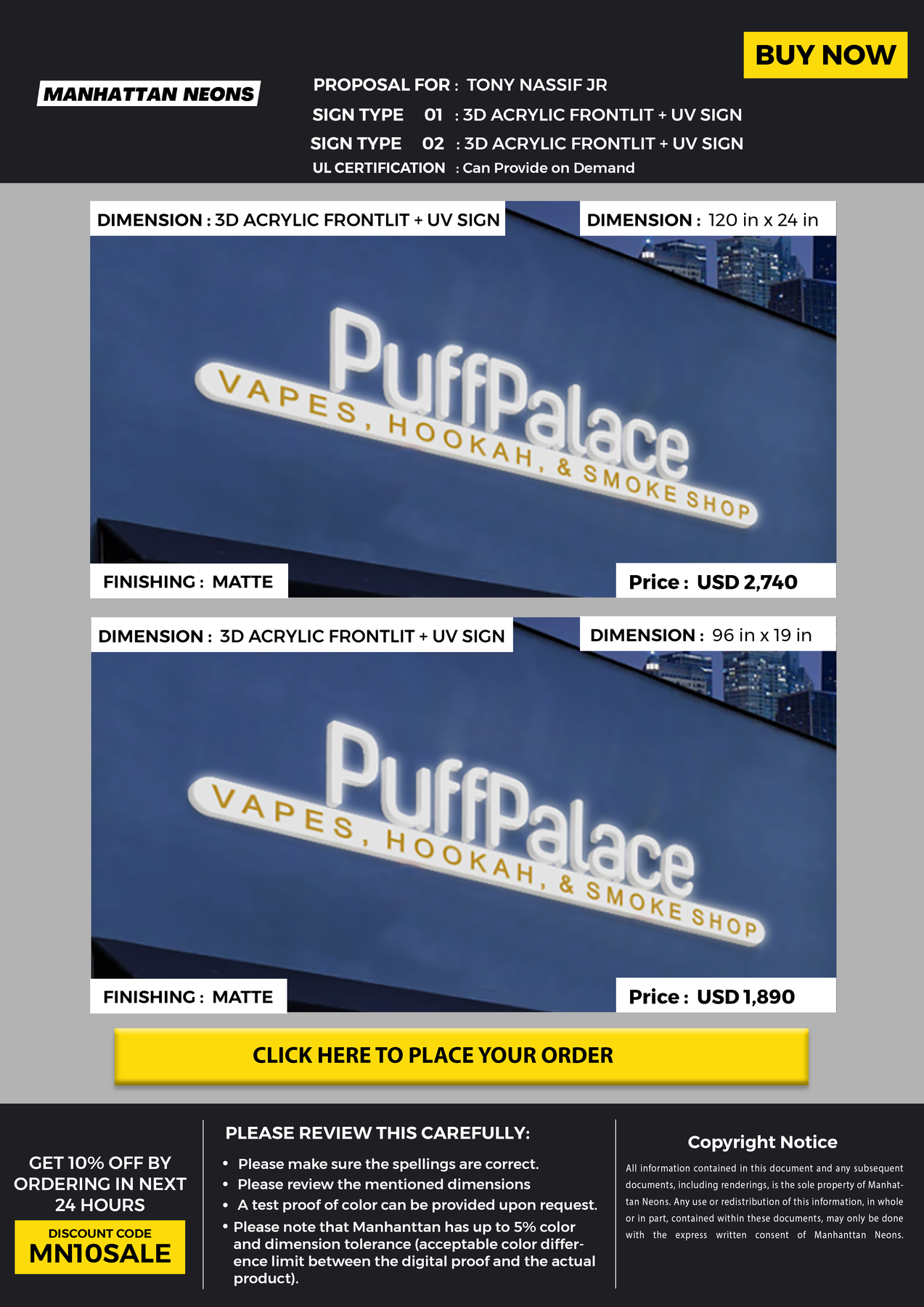 We offer 5 Years Warranty on all our neon signs. We care for all our customers to have a happy experience