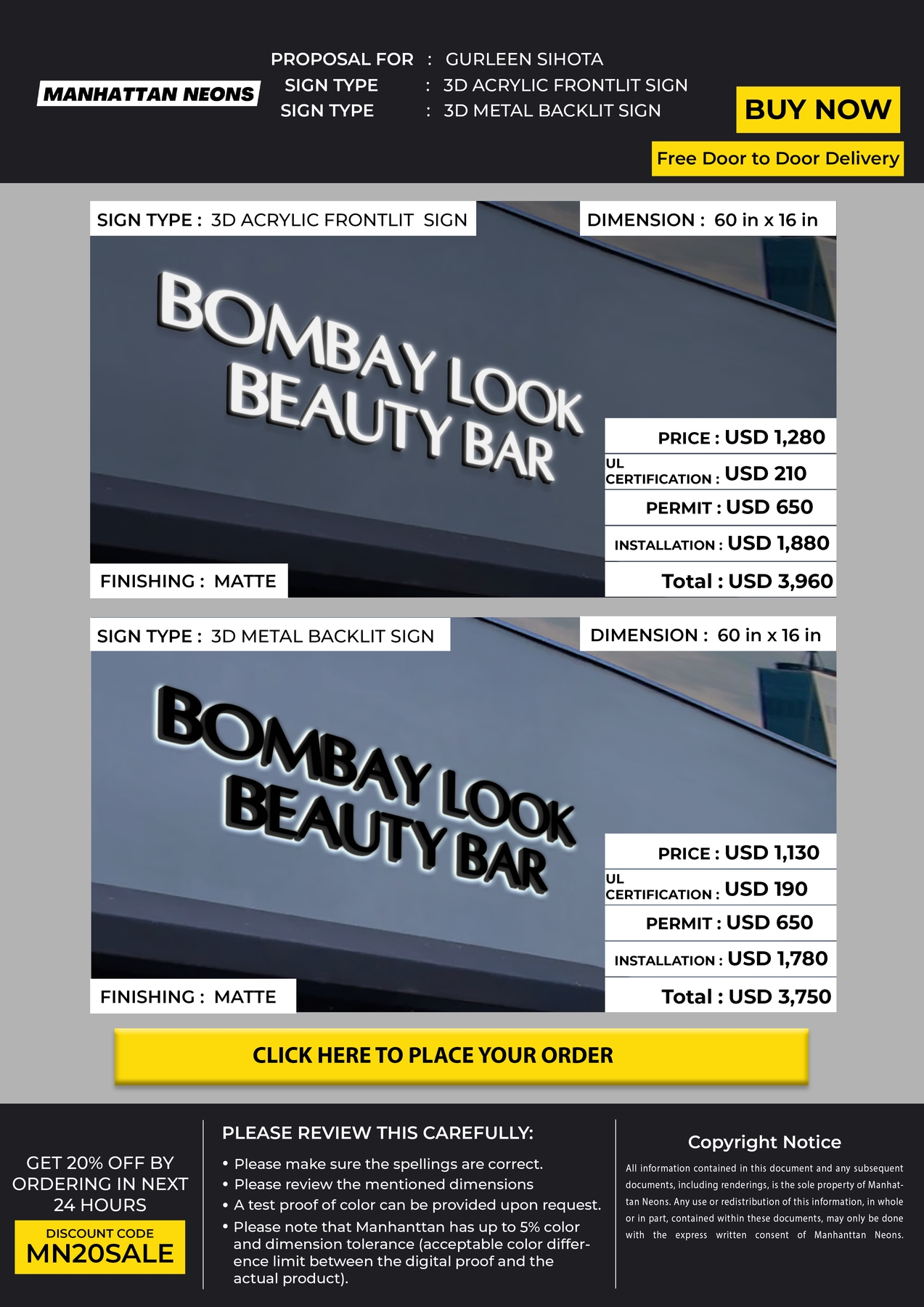 We offer 5 Years Warranty on all our neon signs. We care for all our customers to have a happy experience