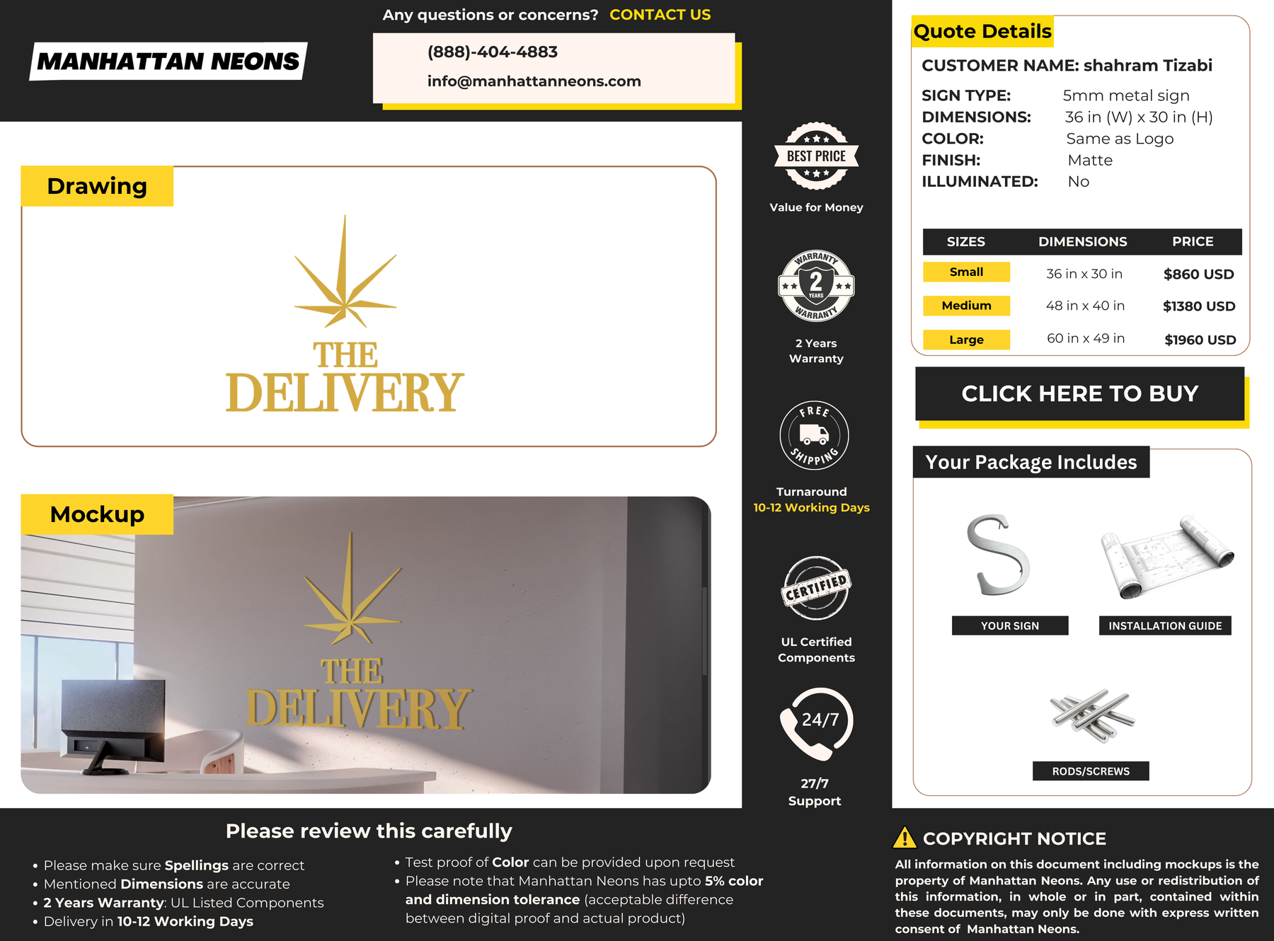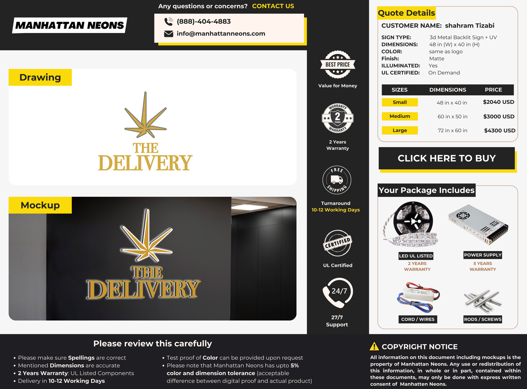 We offer 5 Years Warranty on all our neon signs. We care for all our customers to have a happy experience