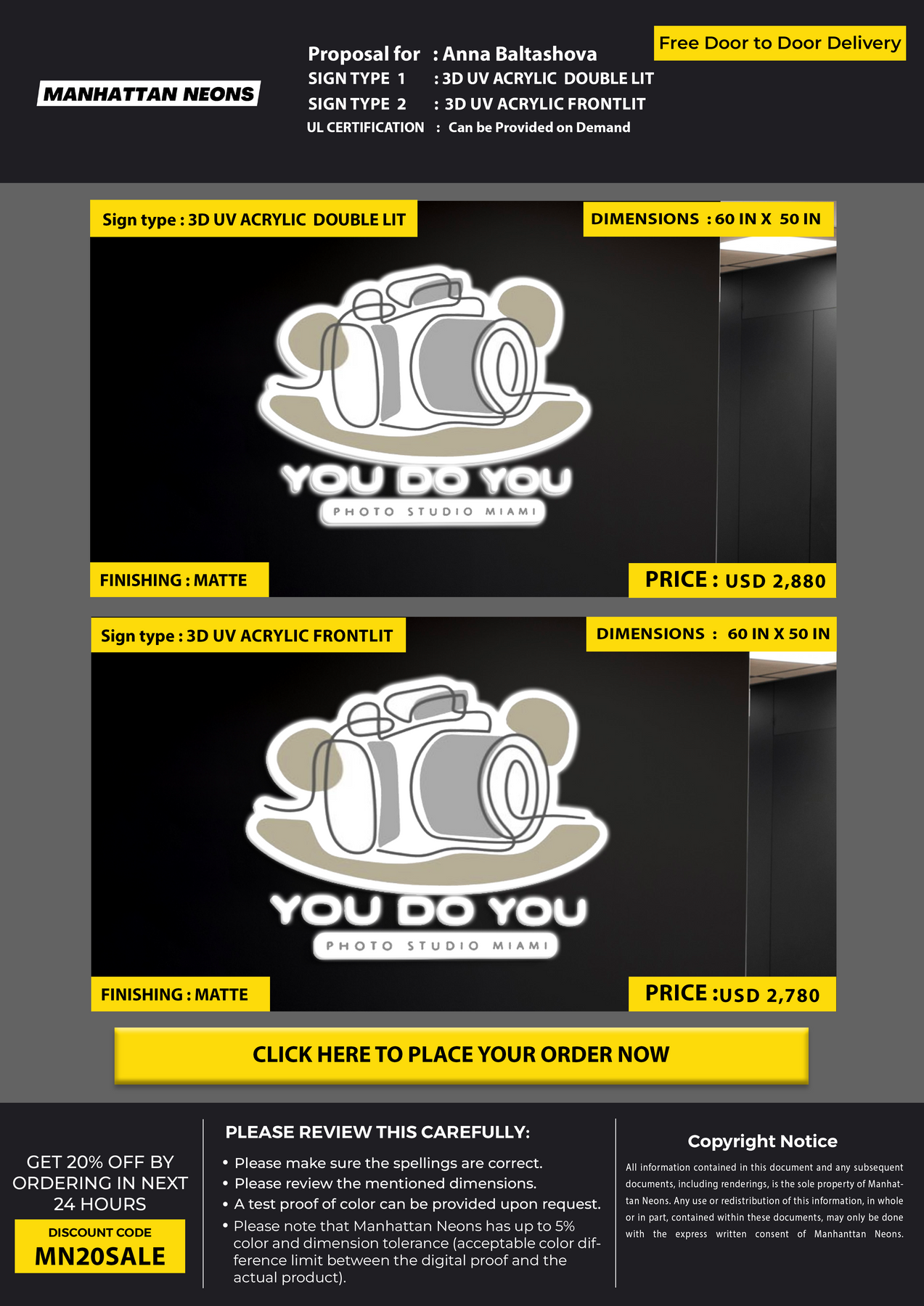 We offer 5 Years Warranty on all our neon signs. We care for all our customers to have a happy experience