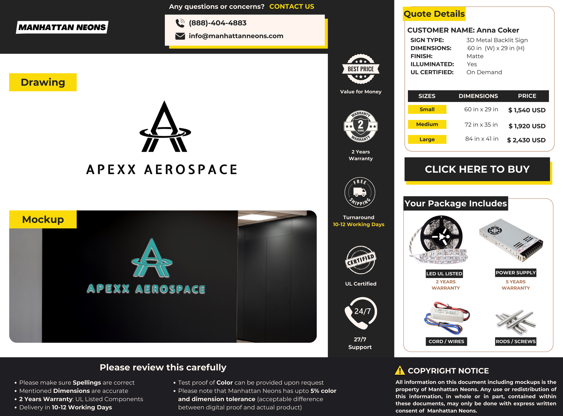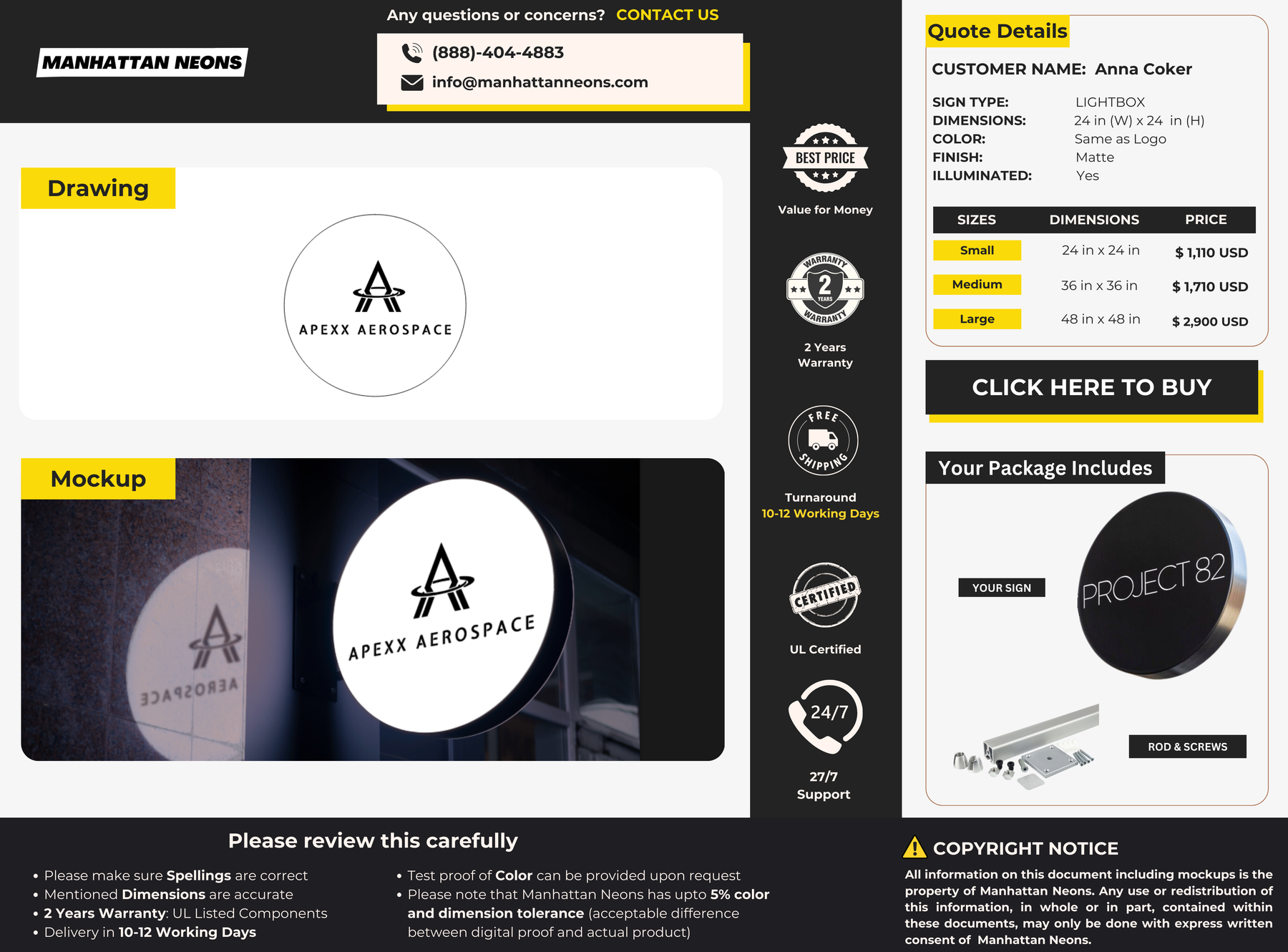 We offer 5 Years Warranty on all our neon signs. We care for all our customers to have a happy experience