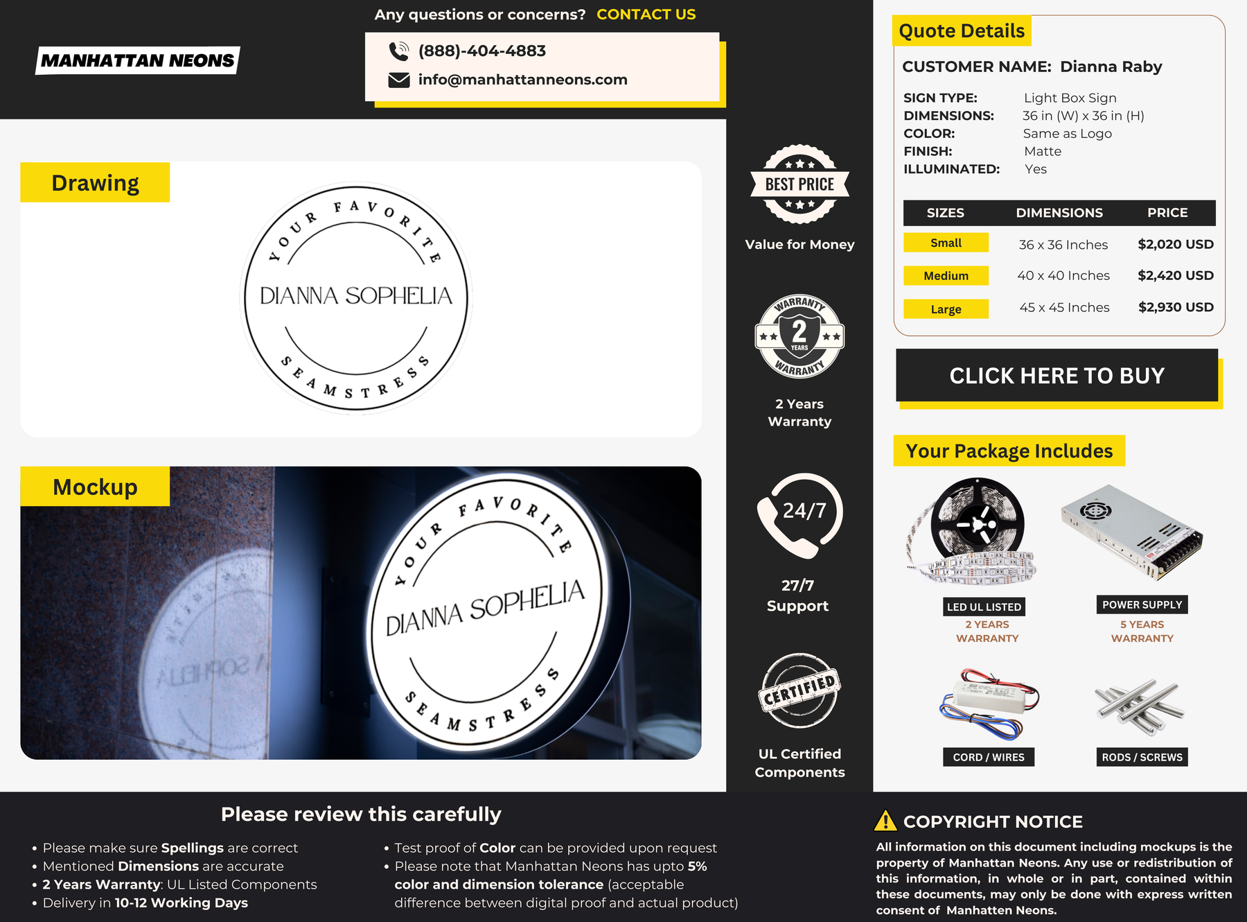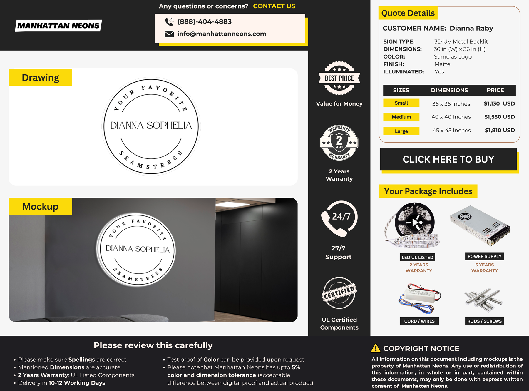 We offer 5 Years Warranty on all our neon signs. We care for all our customers to have a happy experience